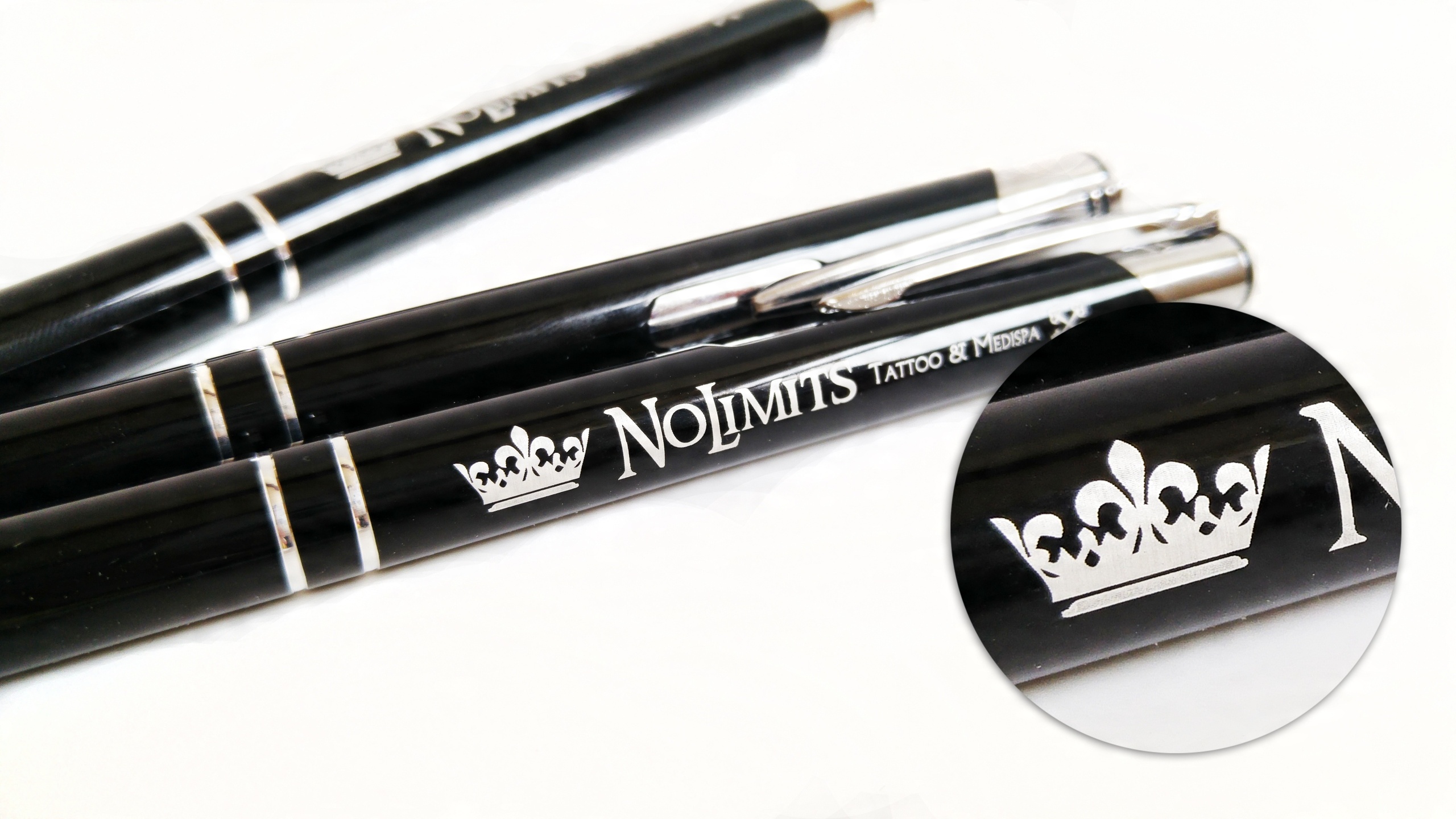 гравірування складається з спалювання лазерного променя зовнішнього шару кольорового лаку та впливу внутрішнього шару.
