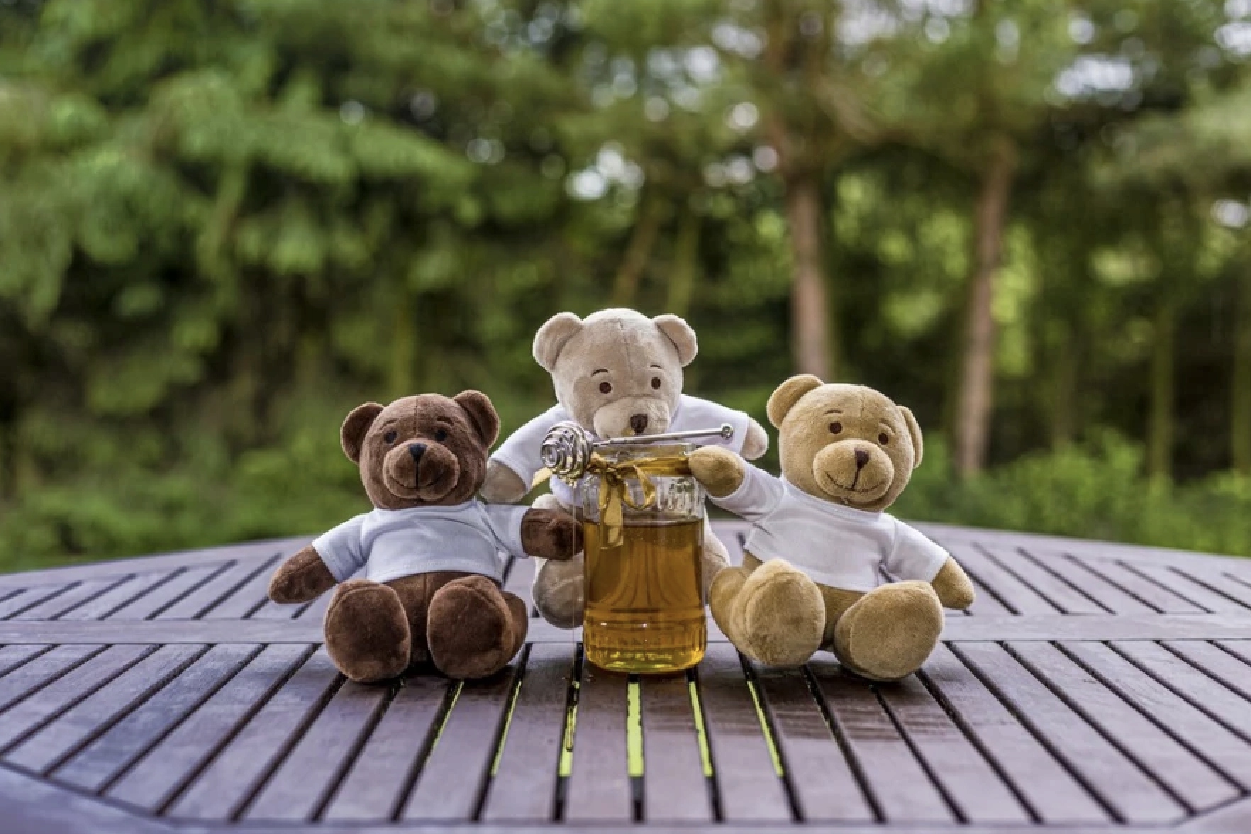РЕКЛАМНІ ВЕДМЕДИКИ з барвистим принтом З ЛОГОТИПОМ Ведмедик СІДДІ МЕД 5 шт.