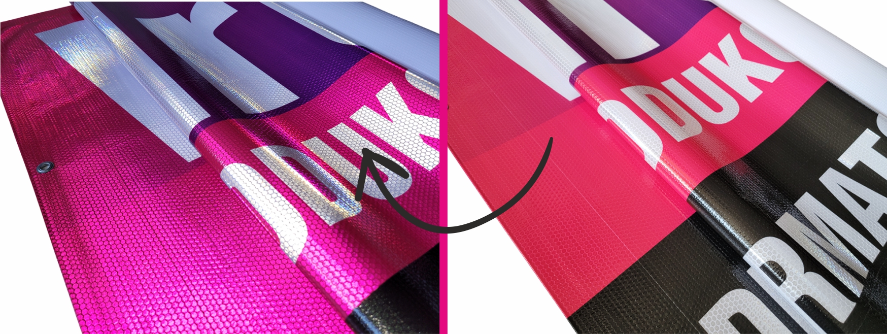 ✅ REFLECTIVE material - міцний, товстий світловідбиваючий матеріал, зі стільниковою структурою, стійкий до погодних умов. Удень він, на перший погляд, не відрізняється від звичайного банера, його властивості помітні в темряві - після направлення на нього джерела світла реклама стає чіткою та добре помітною.
