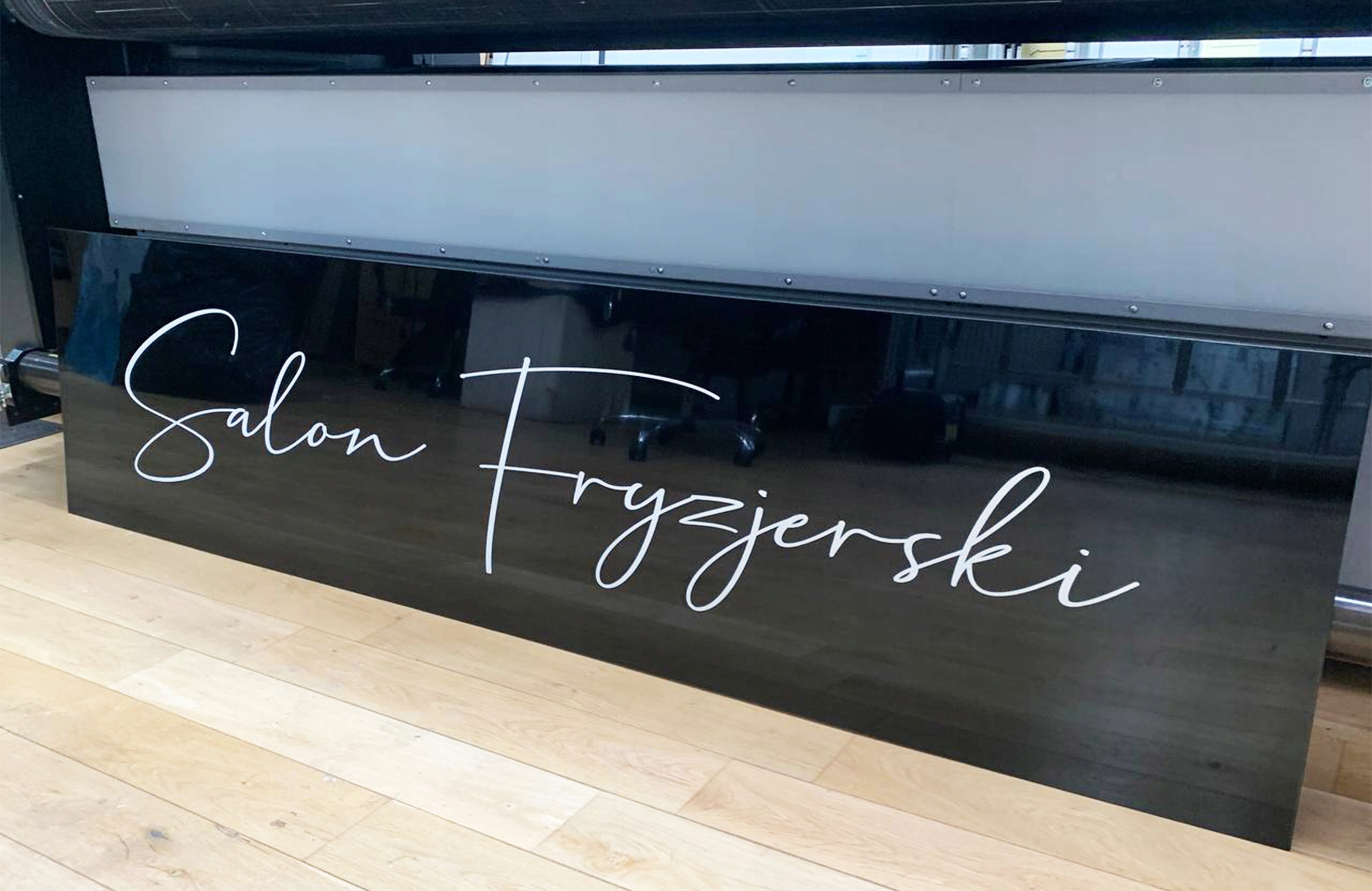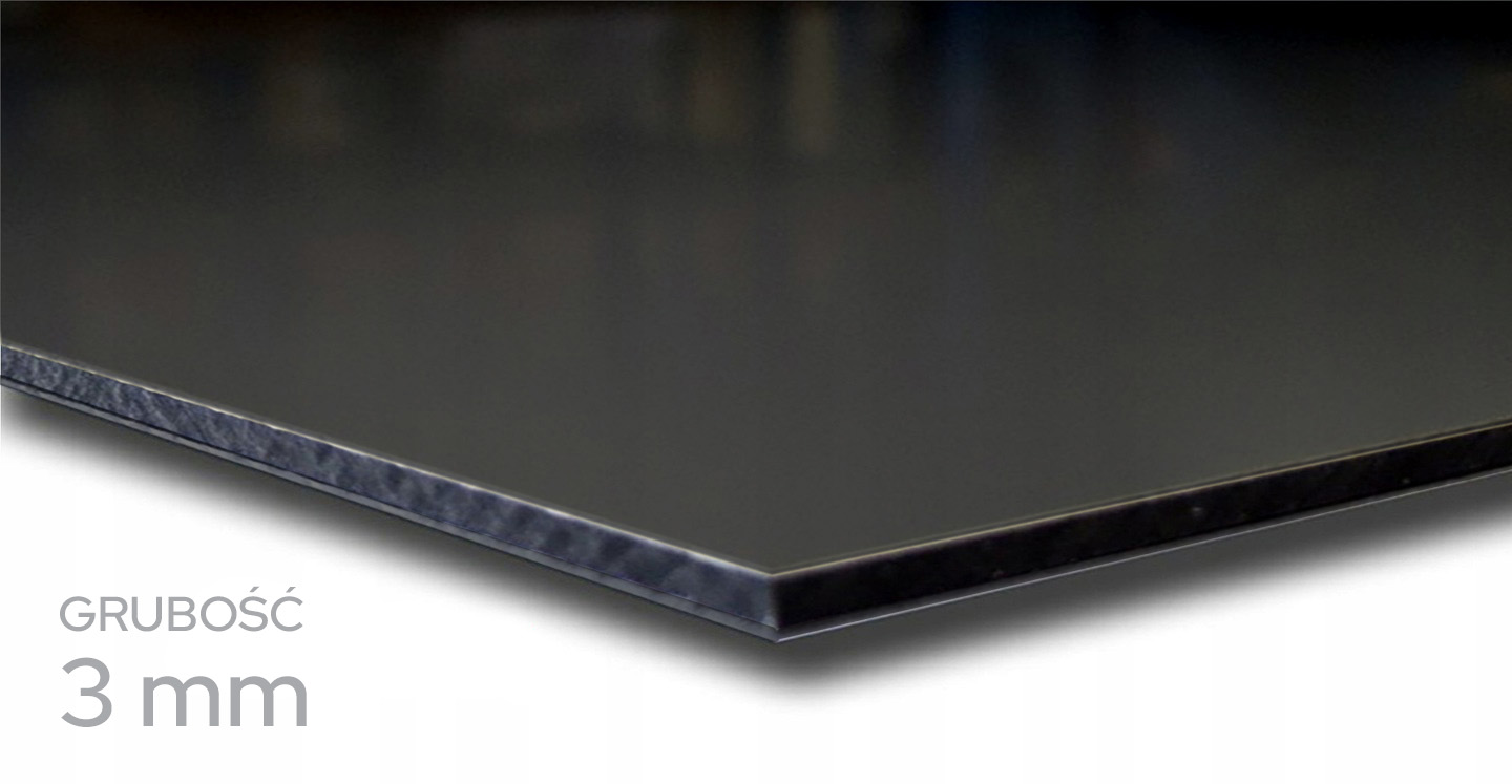 Чорна металева дошка типу DIBOND, товщиною 3 мм з елегантним глянцевим покриттям і друком, виготовленим за допомогою найстійкішого методу УФ