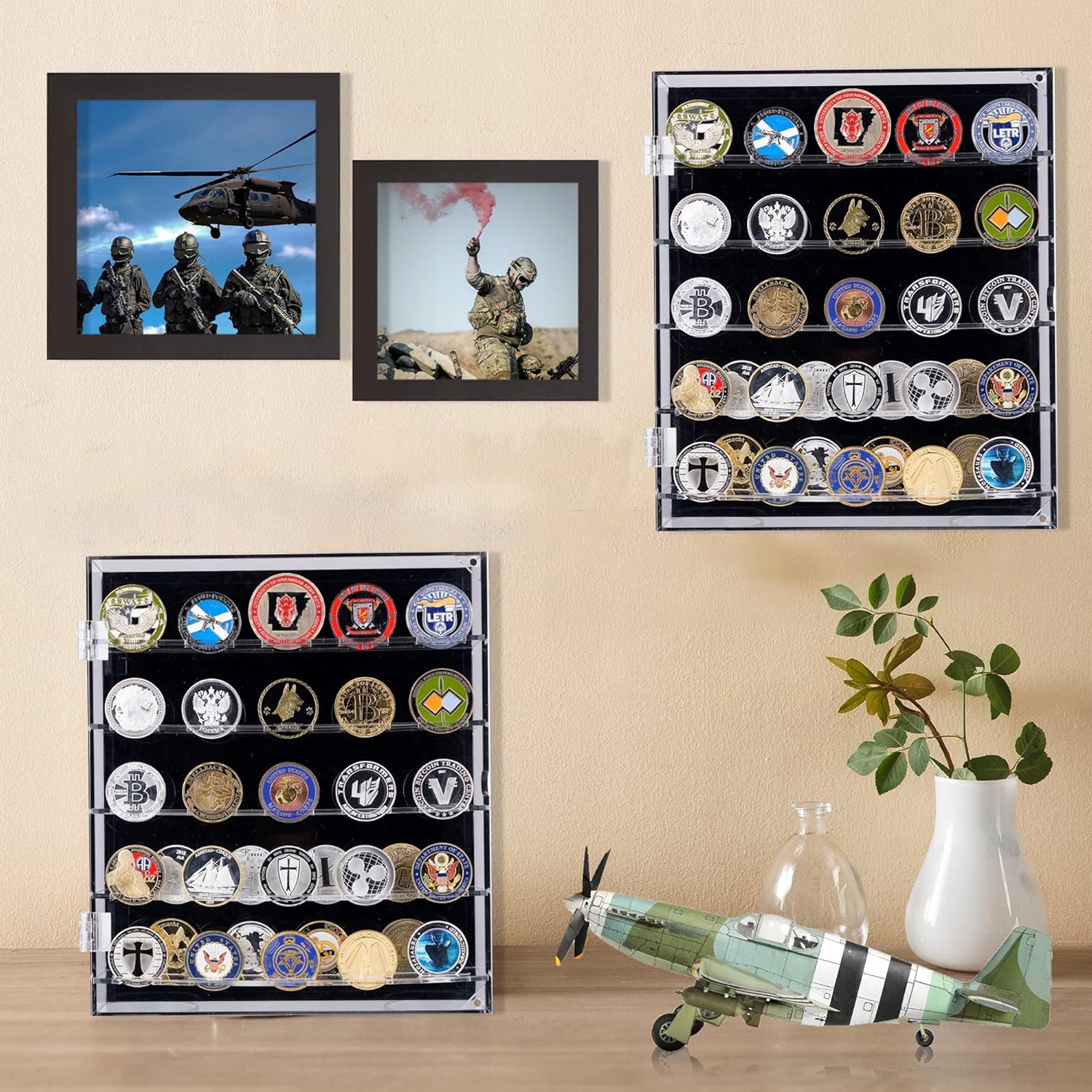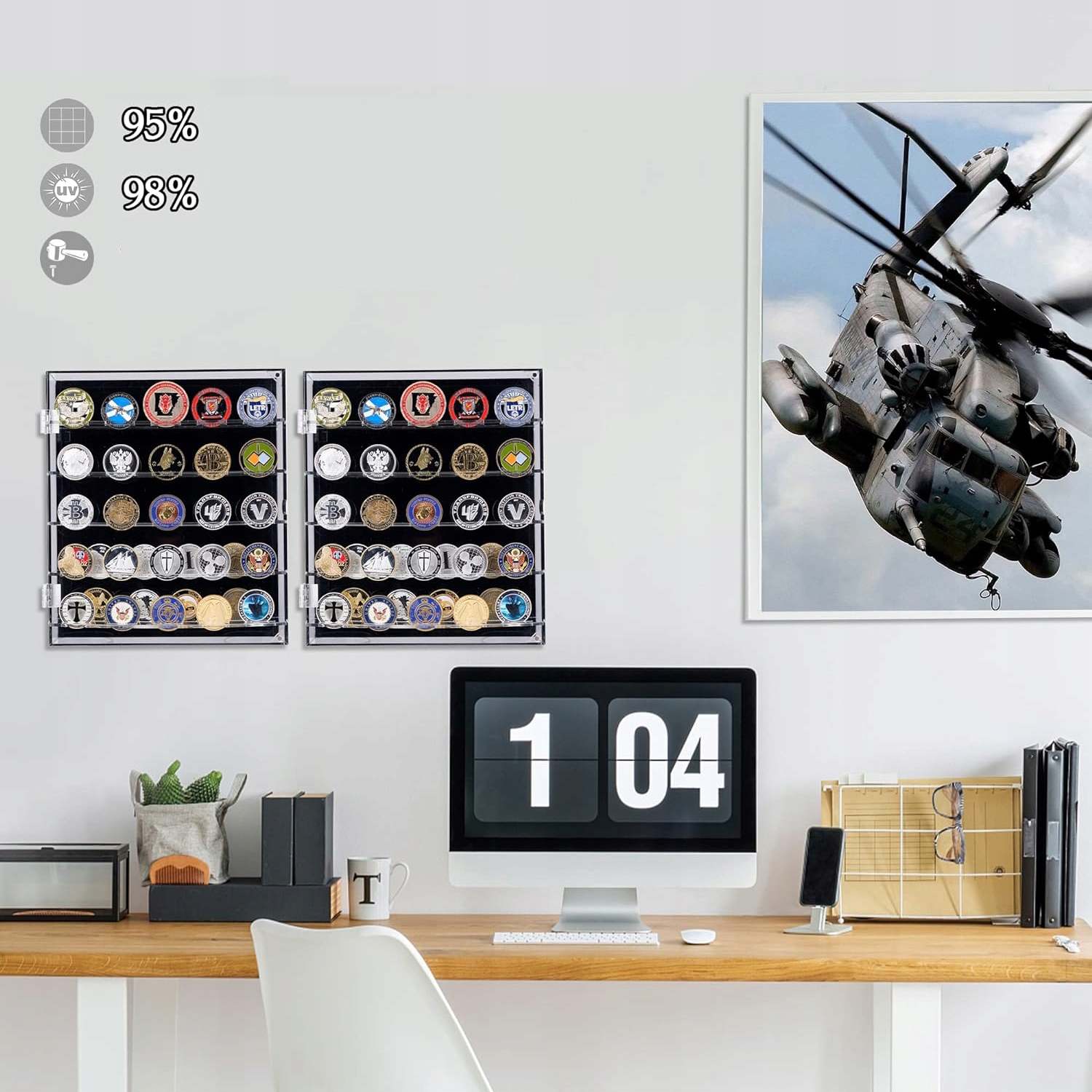 - Вітрина для монет має дошку з двома отворами, яку можна повісити на стіну або поставити на стіл.