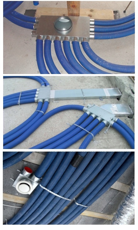 - Низький тиск втрати - мінімізація кількості фітингів (трійників, колін), які створюють точкові опори потоку, суттєво впливаючи на ефективність та енергоефективність вентиляційної установки.