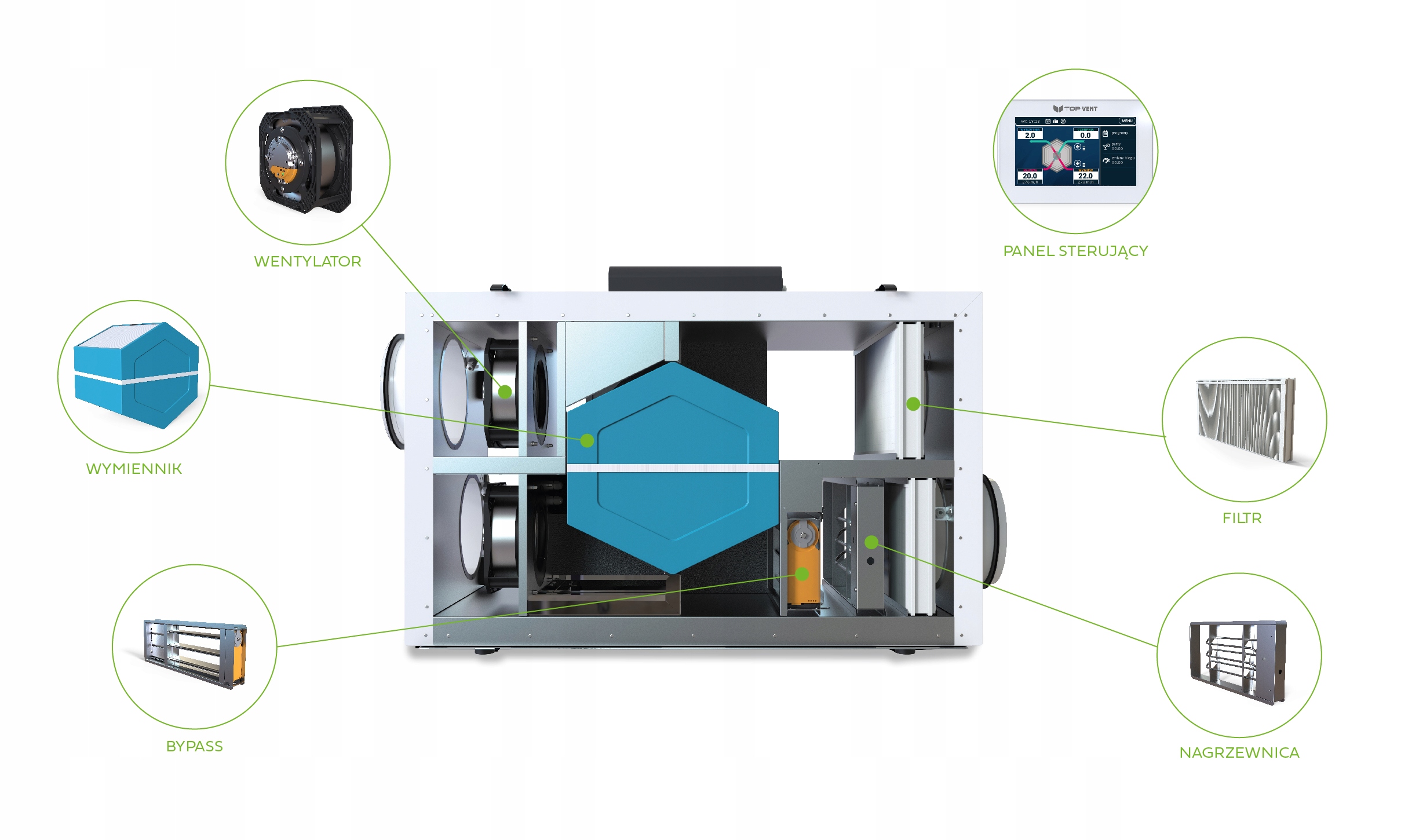 Обмінники HRV передають енергію у вигляді тепла. Для цього витяжне і припливне повітря проходять через повітроводи в протилежних напрямках. Тепле повітря надходить через тонкі канали назовні. Проходячи через ці тонкі канали, холодне вхідне повітря нагрівається теплим витяжним повітрям, що проходить через паралельні пластикові листи.
