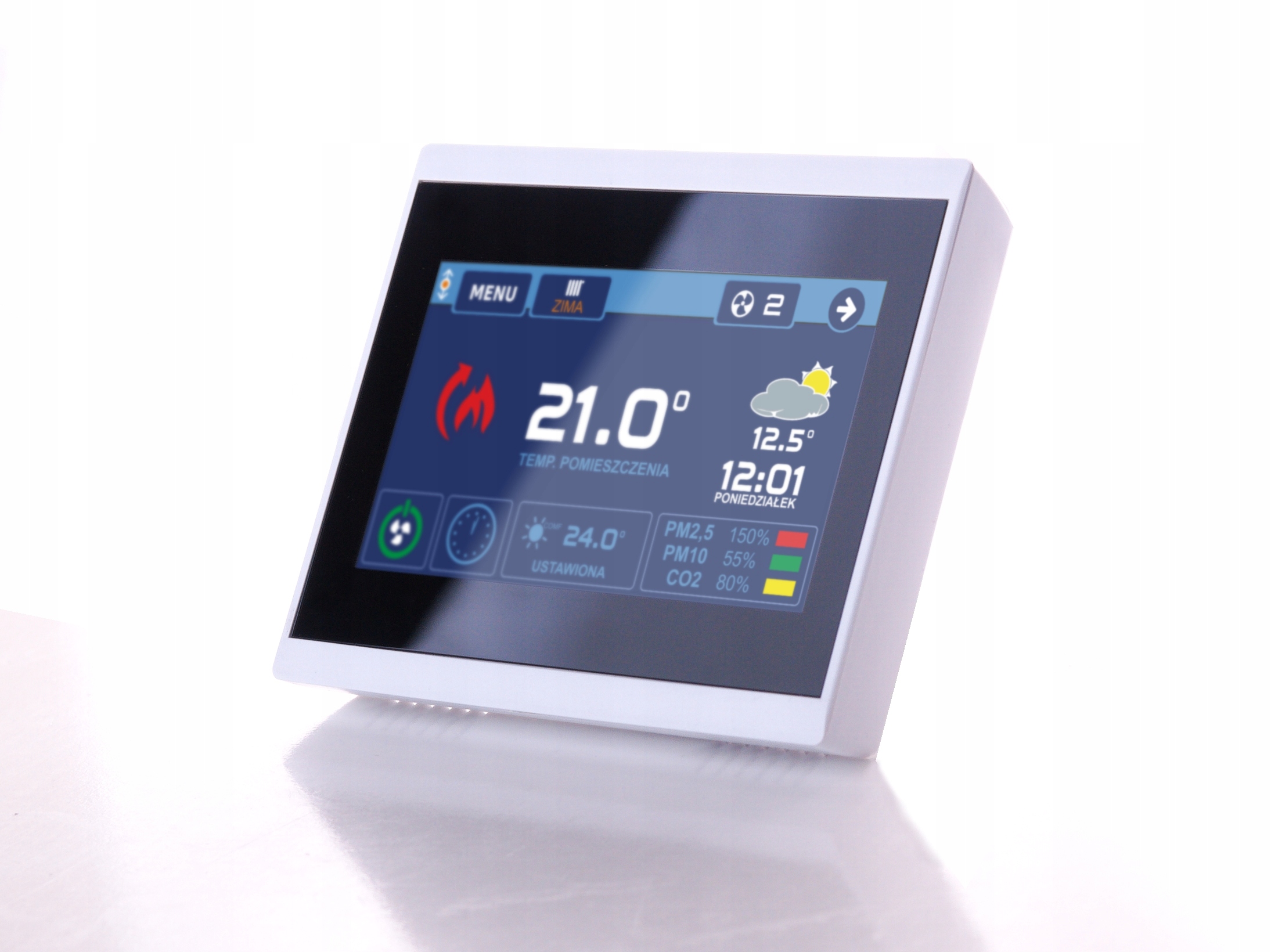 КІМНАТНА ПАНЕЛЬ NANO COLOR - це кімнатна панель, сумісна з регуляторами COMPIT. Ви можете налаштувати дистанційну температуру комфорту, екотемпературу та температуру в програмі ПОЗА ДОМУ (ВІДПУСТКА). Перемикання між комфортною температурою, екотемпературою та зоною OUT OF HOME здійснюється автоматично за запрограмованим щоденним та тижневим розкладом. Крім того, терморегулятор має розклад на вихідні та ручний режим роботи.