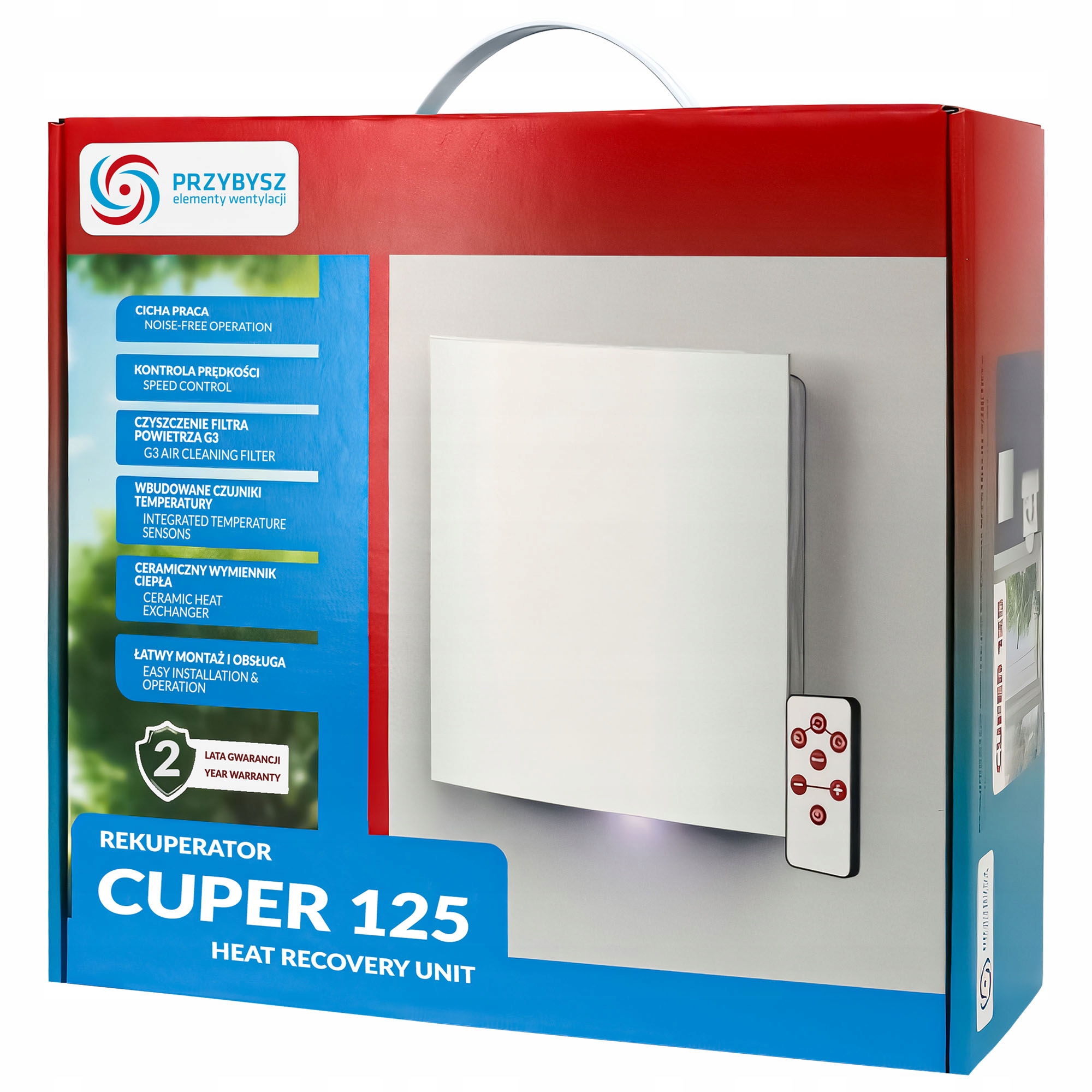 Rekuperator ścienny decentralny CUPER ø125 6 biegów wymiennik ceramiczny