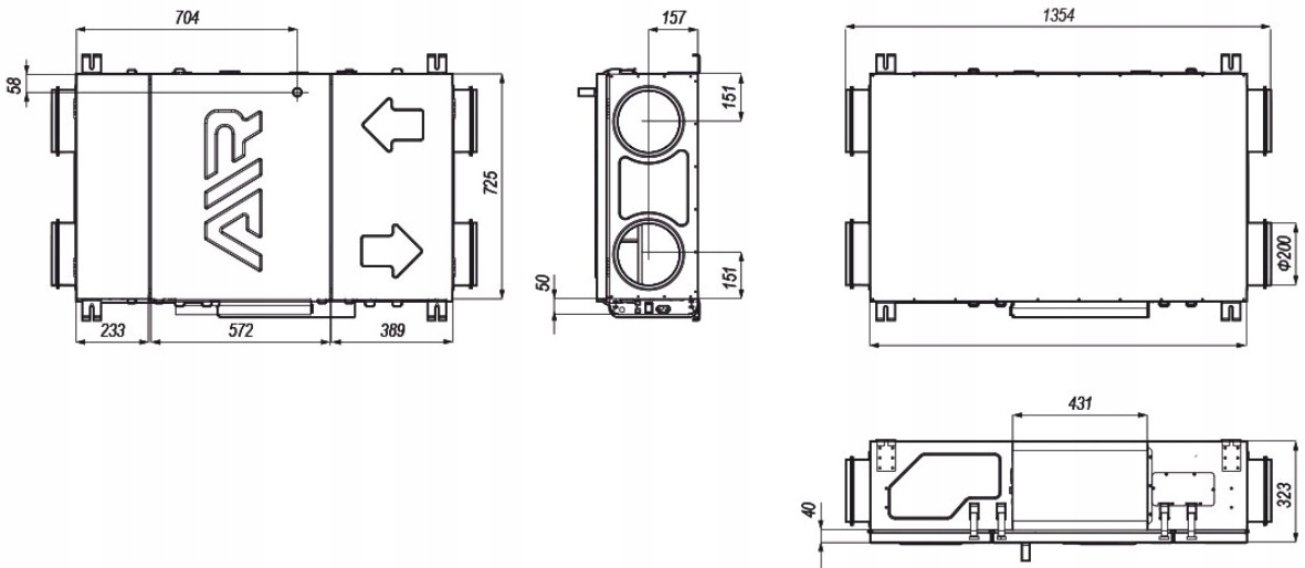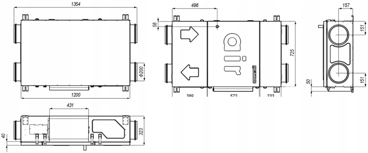 - Автоматичний байпас - установка оснащена 100% байпасом, який при необхідності дозволяє приміщення, яке потрібно охолоджувати, завдяки прямому надходженню прохолодного повітря до приміщень ззовні влітку без необхідності заміни теплообмінника на літні касети, які з точки зору часу та обслуговування є досить обтяжливими в експлуатації.