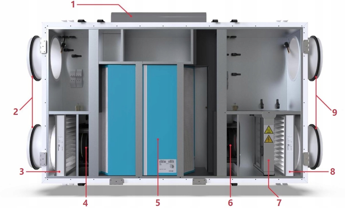 - Теплова ефективність рекуперації тепла відповідно до PN-EN 308: 89,1%