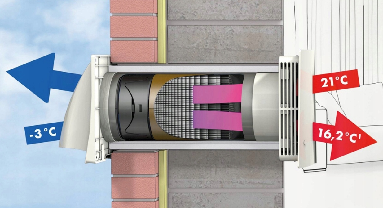 Тепле відпрацьоване повітря викидається з приміщення назовні протягом 70 секунд, одночасно нагріваючи керамічний елемент. Потім пристрій змінює напрямок нагнітання: тепер свіже повітря тече ззовні всередину та нагрівається теплом, яке зберігається в керамічному елементі.