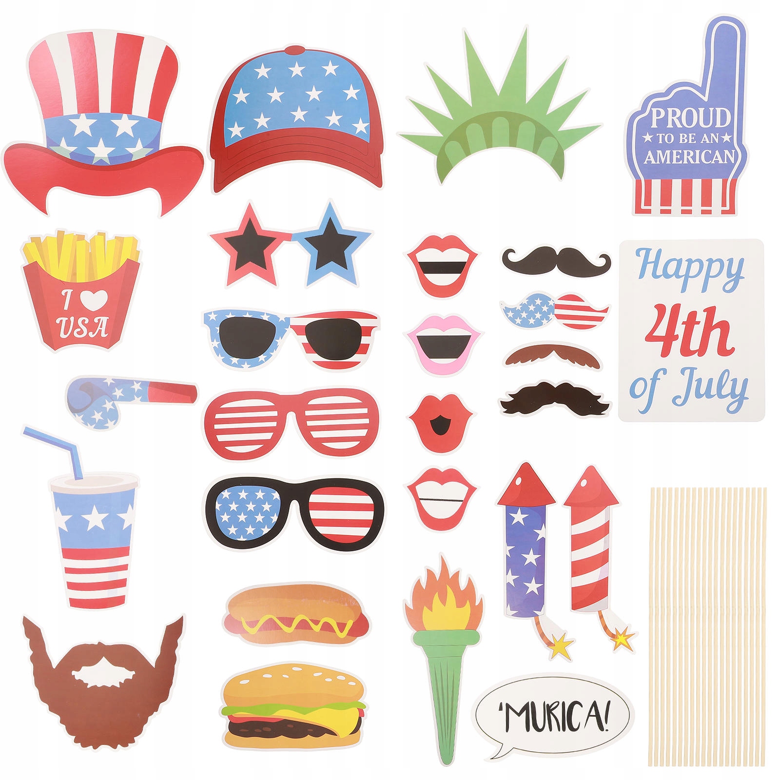 ✅Цього року зробіть День Незалежності незабутнім спогадом для вас, вашої родини та друзів за допомогою цього реквізиту для фотозони 4 липня. Цей набір складається з 27 різноманітних кумедних фотореквізитів, включаючи божевільні вуса, окуляри тощо. Вони обов’язково принесуть велику радість вам і вашим людям, тим самим покращуючи атмосферу святкової вечірки.