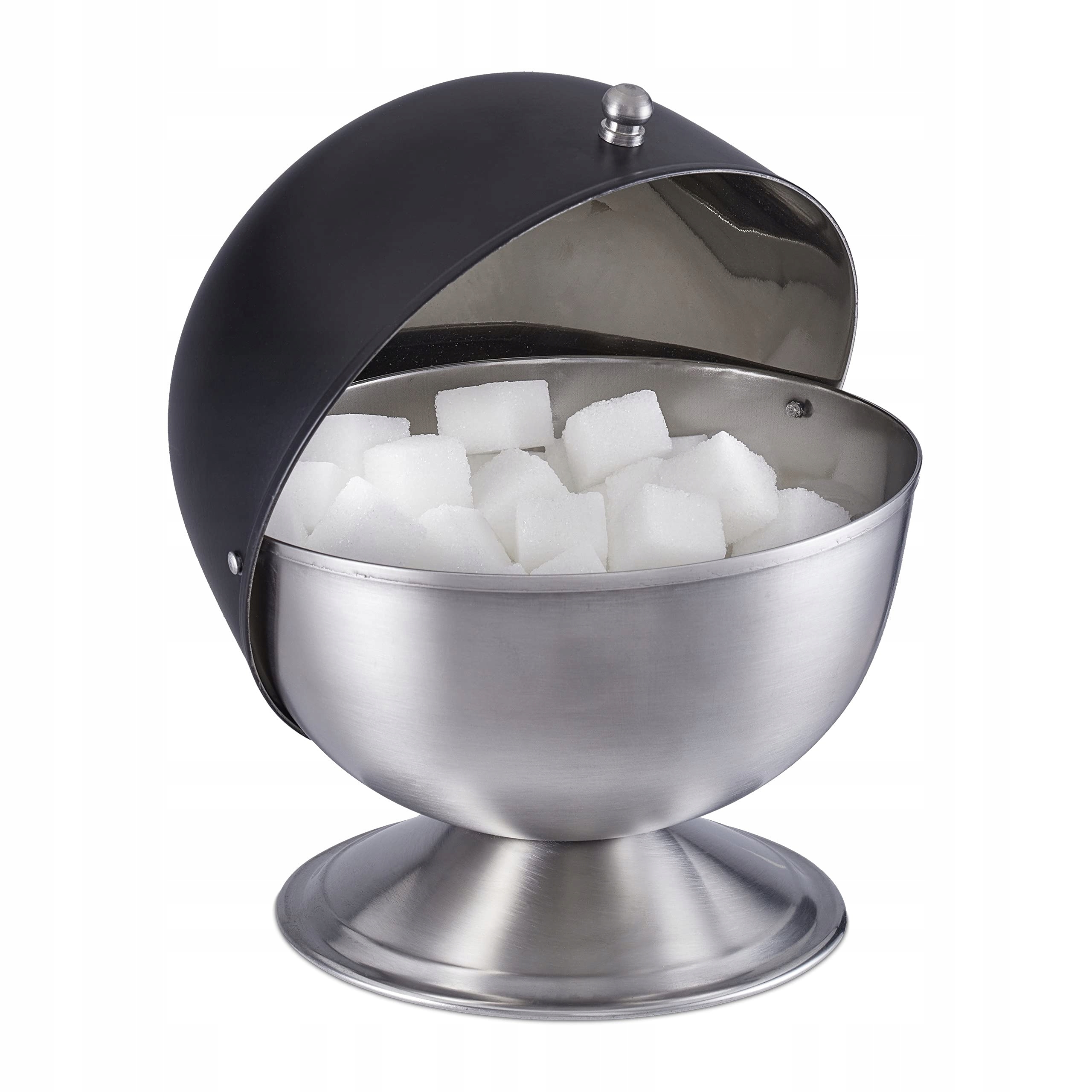 , оснащена кришкою, що котила, із зручною ручкою, кондитер ефективно захищає вміст від вологи та пилу, забезпечуючи свіжість збережених продуктів. Нержавіюча сталь з елегантною чорною кришкою, цукрова миска виглядає чудово на кожному столі. Його розміри (висота x gł.: Приблизно 15,5 х 14 см) роблять його компактним і в той же час є містяним.