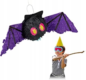З цією піньятою з кажаном ви створите гарний настрій на наступному дні народження вашої дитини. Ви можете наповнити цю літаючу істоту солодощами, іграшками, маленькими подарунками або конфетті. Під час гри діти із зав’язаними очима по черзі б’ють палицею по піньяті, доки не зламають її й не виб’ють усі сюрпризи. Піньята також є атмосферною прикрасою для наступної вечірки на Хеловін. Параметри піньяти у формі кажана - розміри: прибл. 21,5 x 52 x 23 см (висота x ширина x довжина) - вага: прибл. 60 г - матеріал: папір, картон, пластик - колір: чорний, бузковий, зелений 4x Піньята на день народження для підвішування - для наповнення солодощами або іграшками - чудова ідея для розваги під час дитячого свята - прикраса для вечірки на Хелловін - розвага для дітей і дорослих - практична підвіска вгорі У набір входить - 4x піньята у формі кажана - декоративні елементи в набір не входять