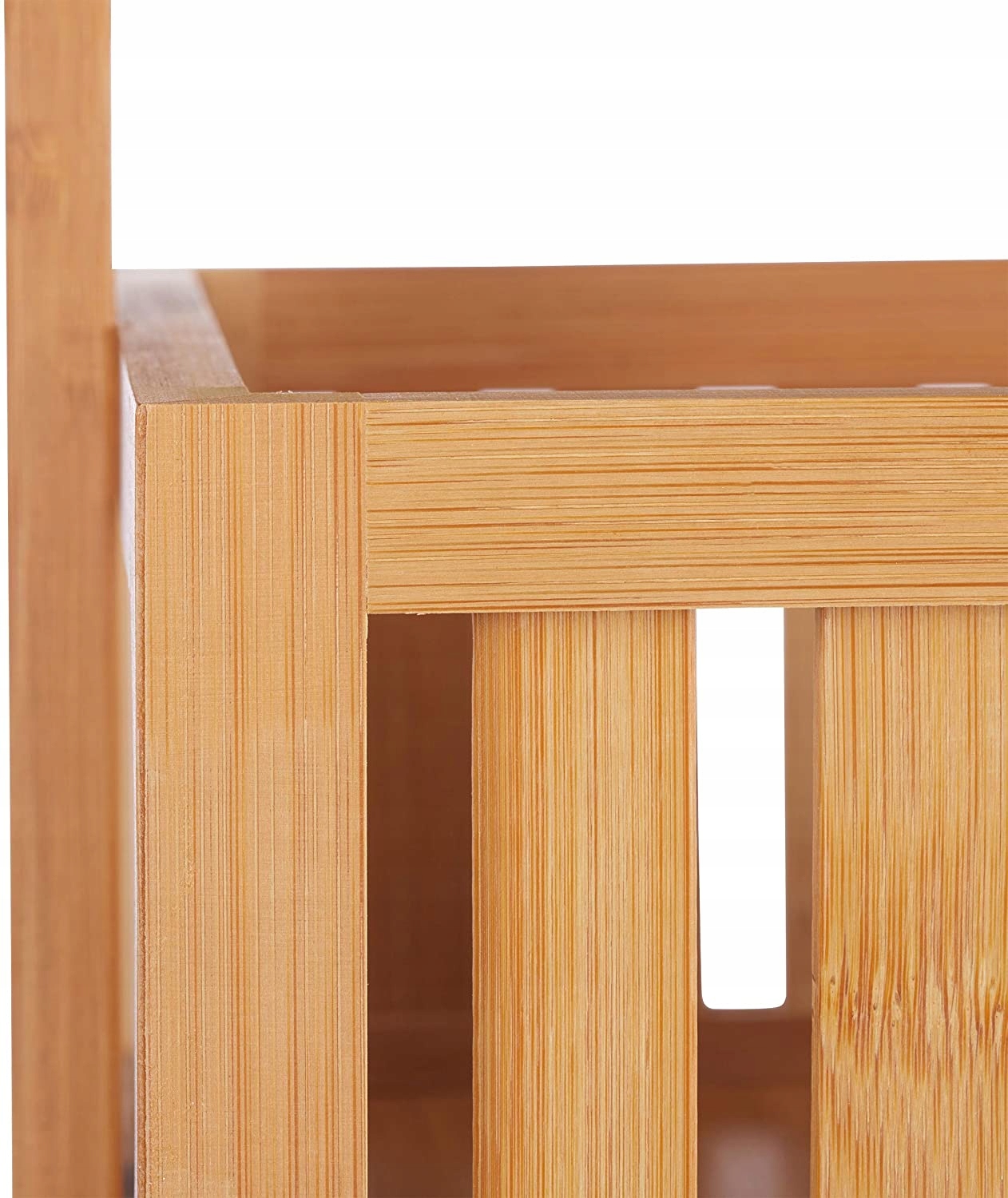 Дерев'яна полиця з високоякісного бамбука є природним акцентом у ванній кімнаті. Косметику, рушники та інші аксесуари для ванної кімнати можна зберігати в 3 відділеннях окремої полиці, щоб заощадити місце або красиво виставити. Окрема полиця вражає своїм декоративним виглядом і привертає увагу на кухні, в офісі чи вітальні. Завдяки своїй тонкій формі він добре вписується у вузькі кути, тож ви можете використовувати невеликі простори з бамбуковою полицею.