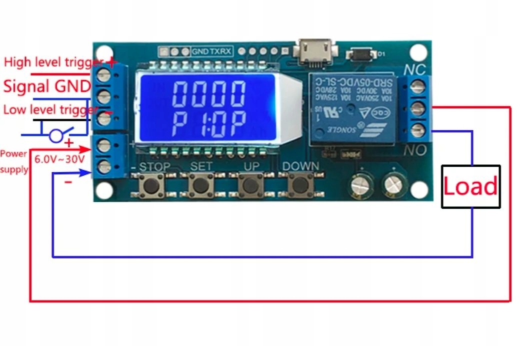 Щоб почати роботу, контролеру потрібен зовнішній низький або високий сигнал. Час затримки можна регулювати від 0,01 с до 9999 хвилин