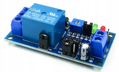 Це релейний модуль, який після спрацьовування тригера (замикання контактів тригера) включається на заданий час. Час встановлюється за допомогою перемичок і потенціометра (див. таблицю нижче).