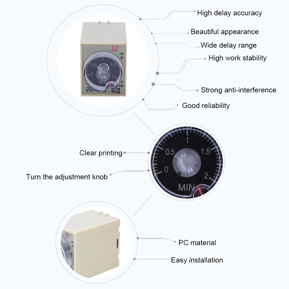 Реле таймера затримки, регульована ручка, високоякісна оболонка ПК ST3PA F AC220V 50/60 Гц