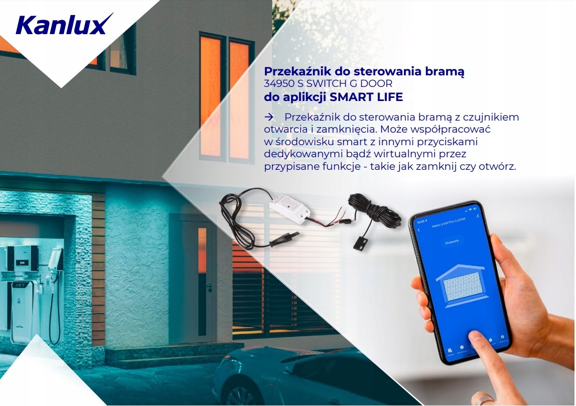 Реле управління маркою з датчиком відкриття та закриття. Він може співпрацювати в розумному середовищі з іншими виділеними або віртуальними кнопок за призначеними функціями - наприклад, закритими або відкритими. Дізнайтеся більше про Kanlux Smart на веб -сайті www.kanluxsmart.com.