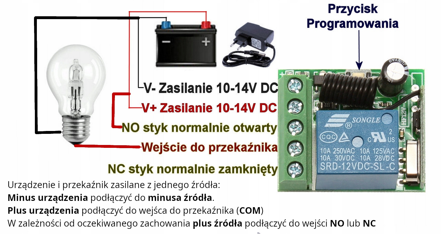 Включає один пілот! Готовий модуль реле 12В з пультом дистанційного керування 433 МГц є ідеальним рішенням для тих, хто цінує комфорт та функціональність. Завдяки естетичному, компактному корпусу та простому пілоту, ви можете легко контролювати світло, гаражні ворота та навіть електричні пристрої в саду -все віддалено!
