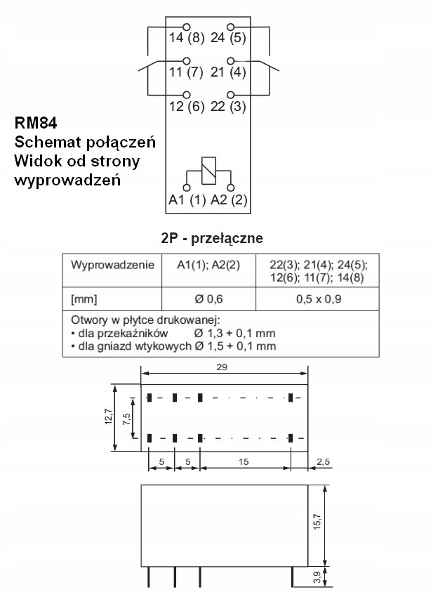 - Заміна для JQX 115F, RM83 та інших із кроком контактів 5 мм і двома перемикаючими або замикаючими контактами