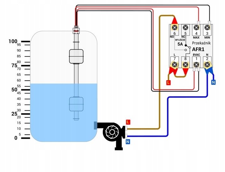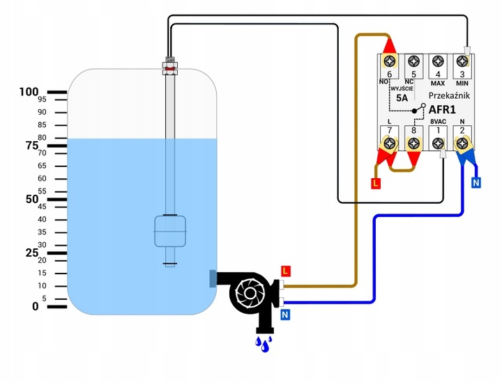 Реле AFR1 використовуються для визначення наявності рідини на рівнях встановлених герконових датчиків. Він дозволяє підтримувати мінімальний і максимальний стани контрольованої рідини в межах, заданих користувачем. Включає джерело керуючої напруги 8 В змінного струму для поплавкових датчиків. Реле працює з датчиками рівня рідини та потоку рідини, які включені в нашу пропозицію. У комплект входить розетка реле з кріпленням на DIN-рейку.