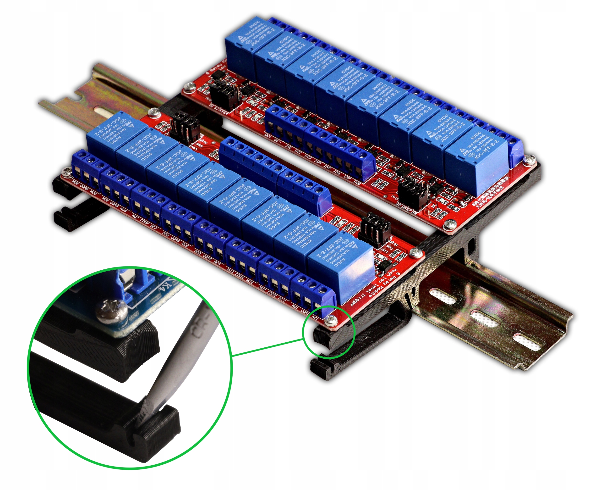 Подвійний монтажний кронштейн на DIN-рейку 35 мм для 8-канального модуля механічного реле - горизонтальне встановлення.