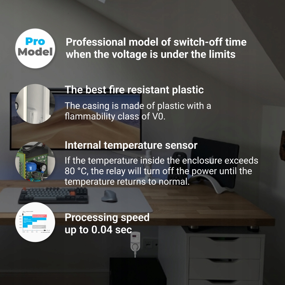 - Професійна модель автоматичного вимикача дозволяє уникнути непотрібних відключень під час безпечних відхилень напруги.