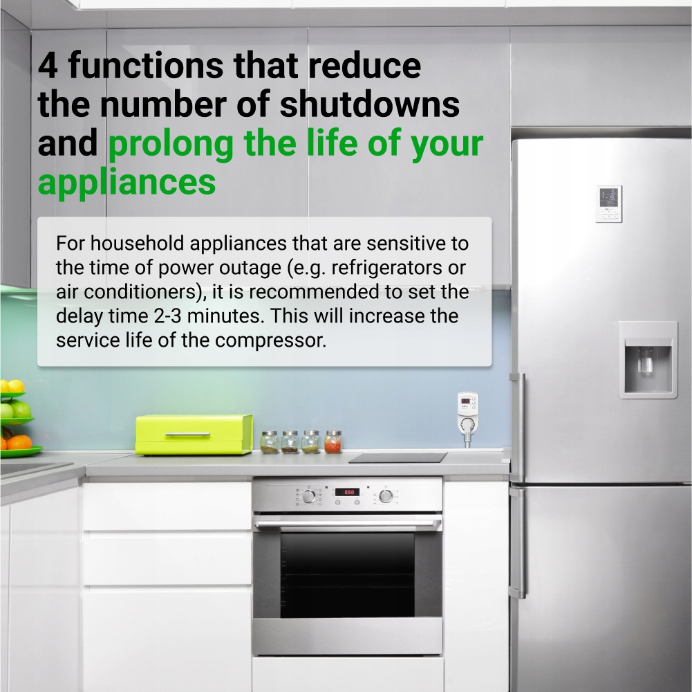 - У випадку компресорних пристроїв (холодильників, кондиціонерів) встановіть затримку на 120-180 секунд.
