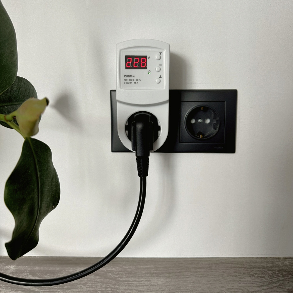 Реле напруги ZUBR R1 надійно захищає підключені електроприлади від високої та низької напруги, а також від збою напруги. Особливістю реле напруги ZUBR R1 є його установка в європейську розетку - це зручно, коли в електрощитку немає місця.