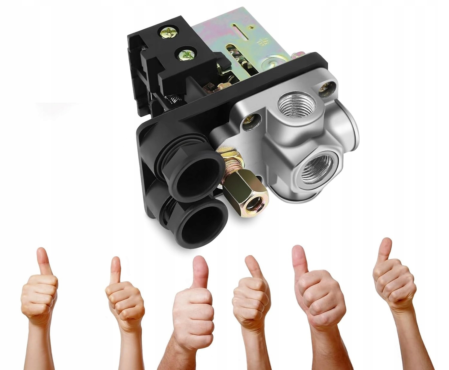Тиск перемикач дозволяє легко регулювати тиск увімкнення та вимкнення - 8 бар та 10 бар відповідно. Завдяки цьому він забезпечує безпечне та ефективне використання компресора.