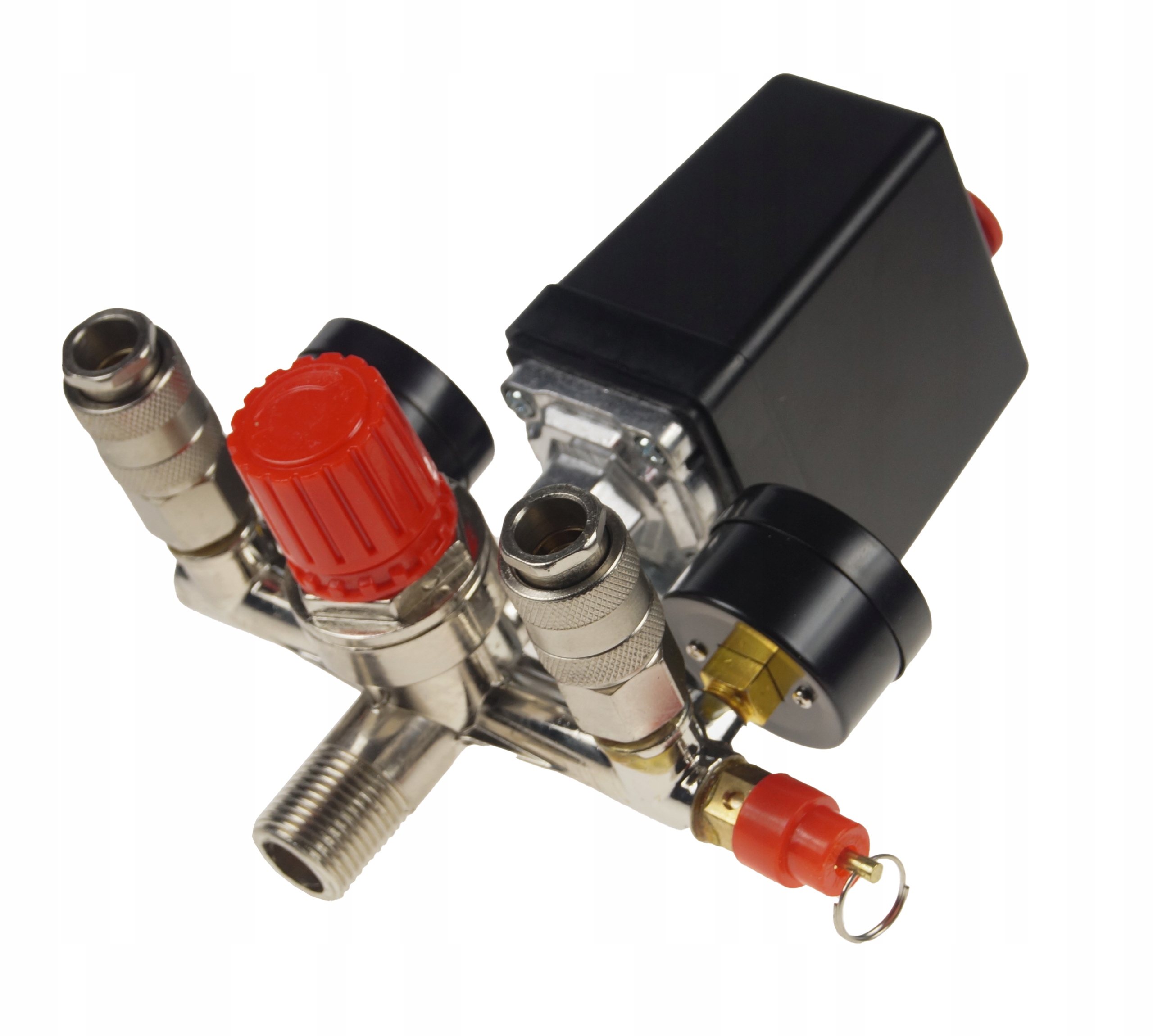 Якісний реле тиску (реле тиску) з колектором, двома швидкими з'єднувачами і манометрами, призначене для компресорів тиску 230В.