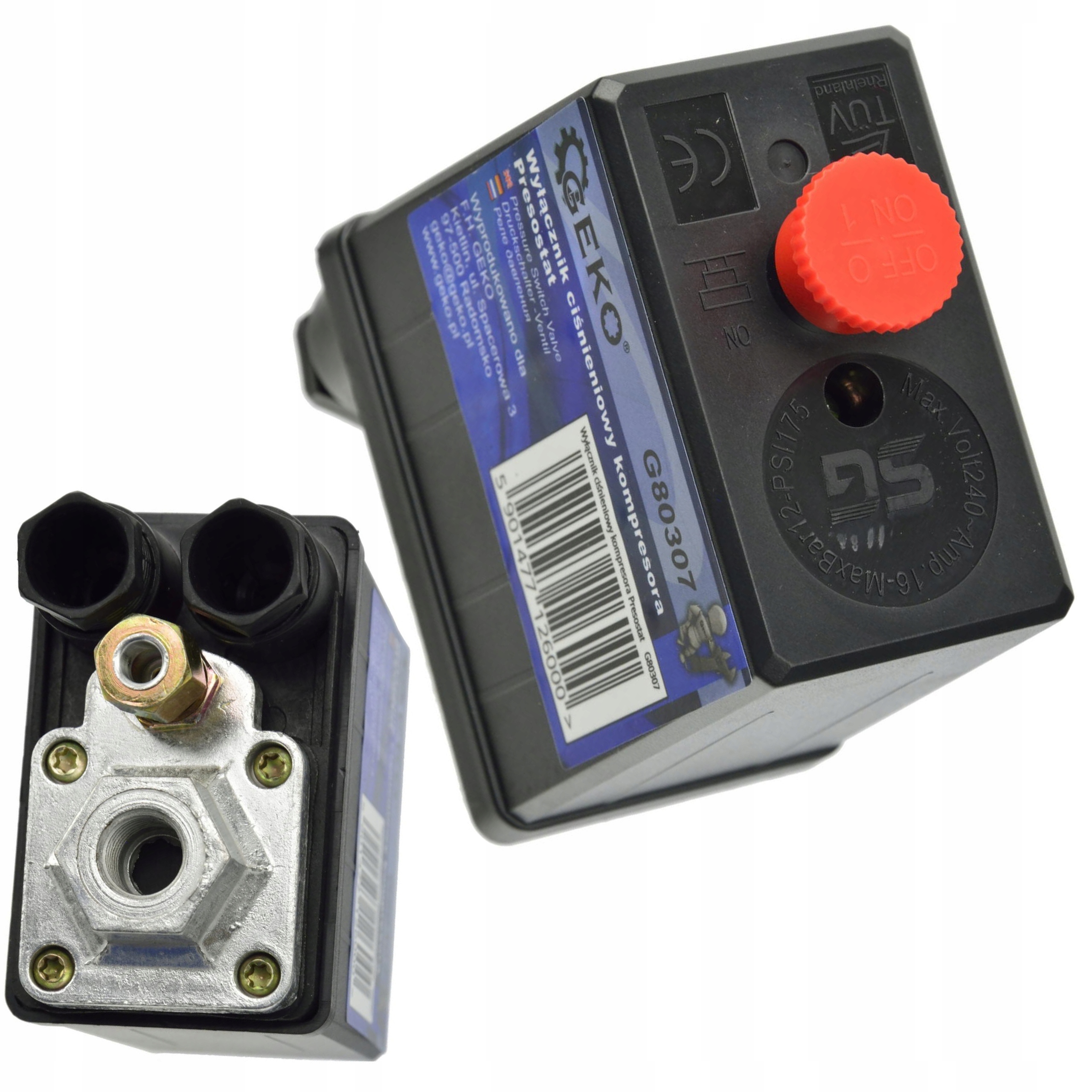 РЕЛЕ ТИСКУ GEKO РЕЛЕ ТИСКУ ДЛЯ КОМПРЕСОРУ 230В 12 БАР 1/4" КОНЕКТОР