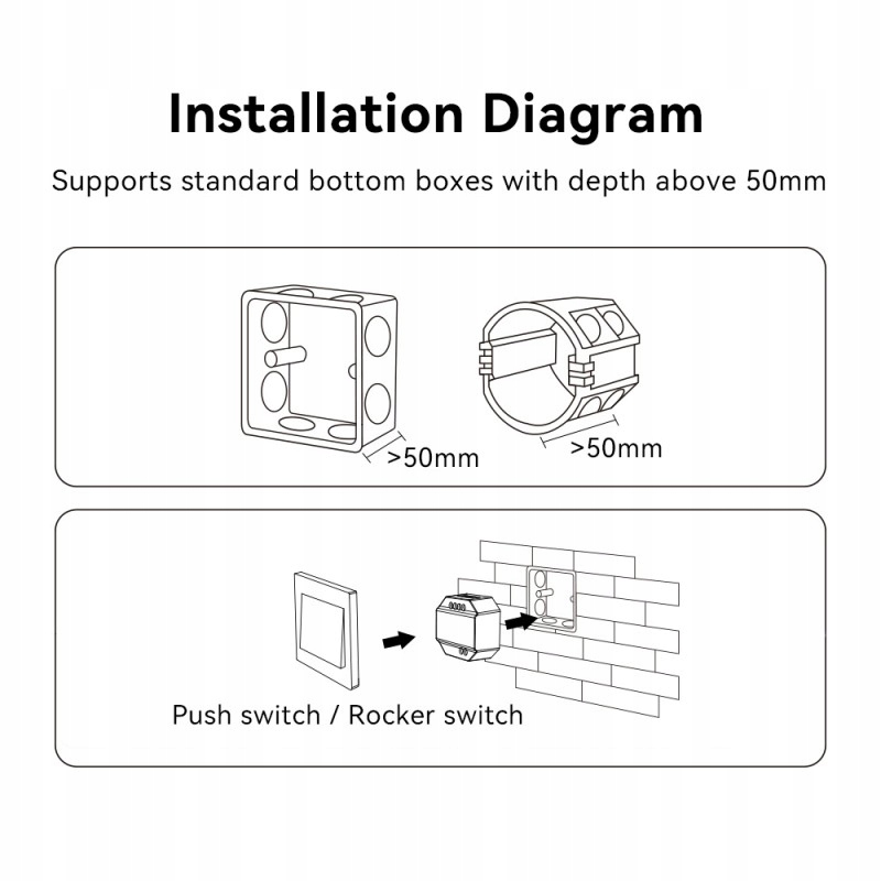 Miboxer Switch WL-SW1 є Контролер освітлення 230В. Він перетворює традиційне освітлення на інтелектуальне, дозволяючи вмикати/вимикати його за допомогою пультів дистанційного керування Milight, через Wi-Fi (потрібен адаптер) або за допомогою вимикача.