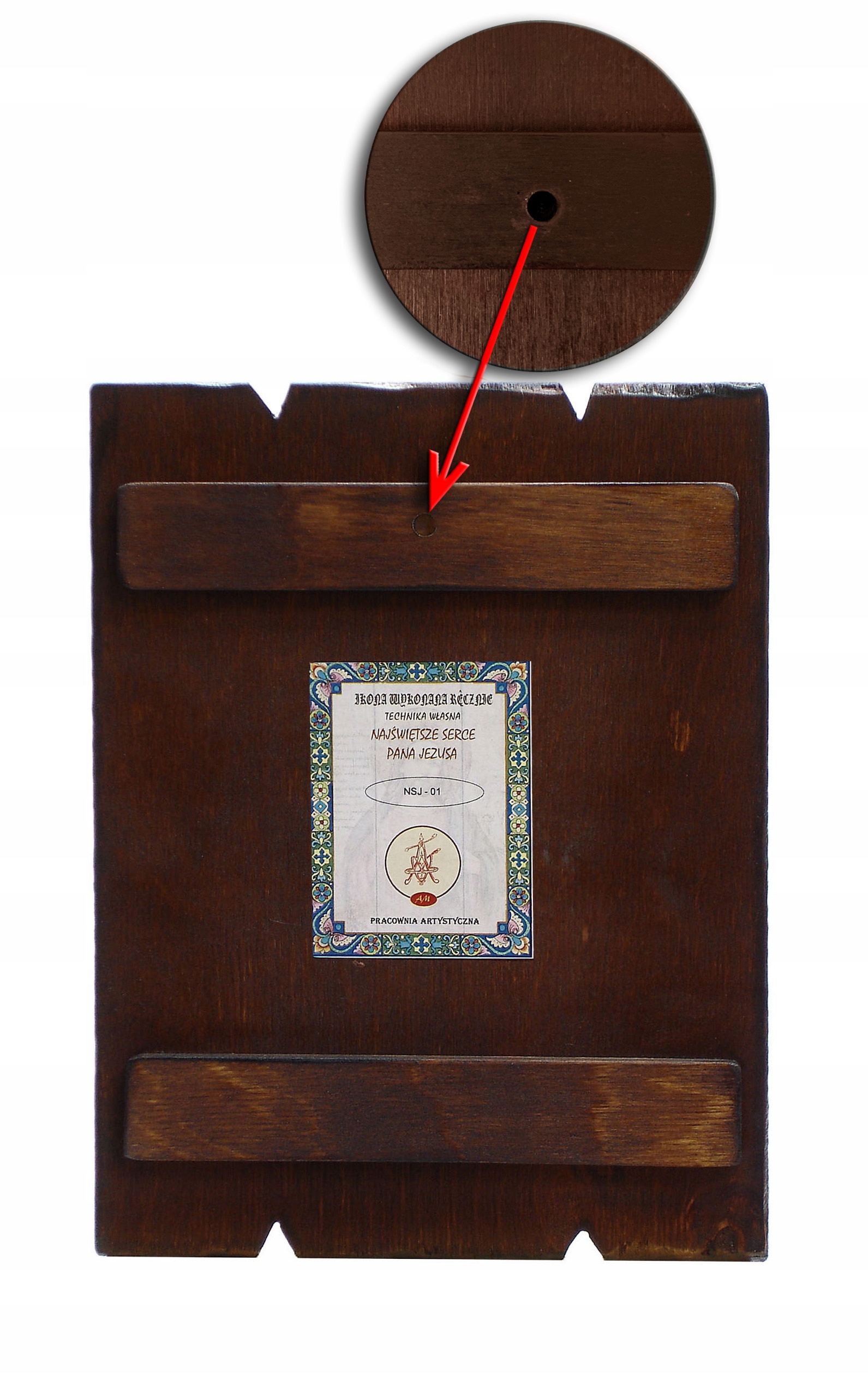 - просвердлений отвір ззаду для підвішування ікони li>