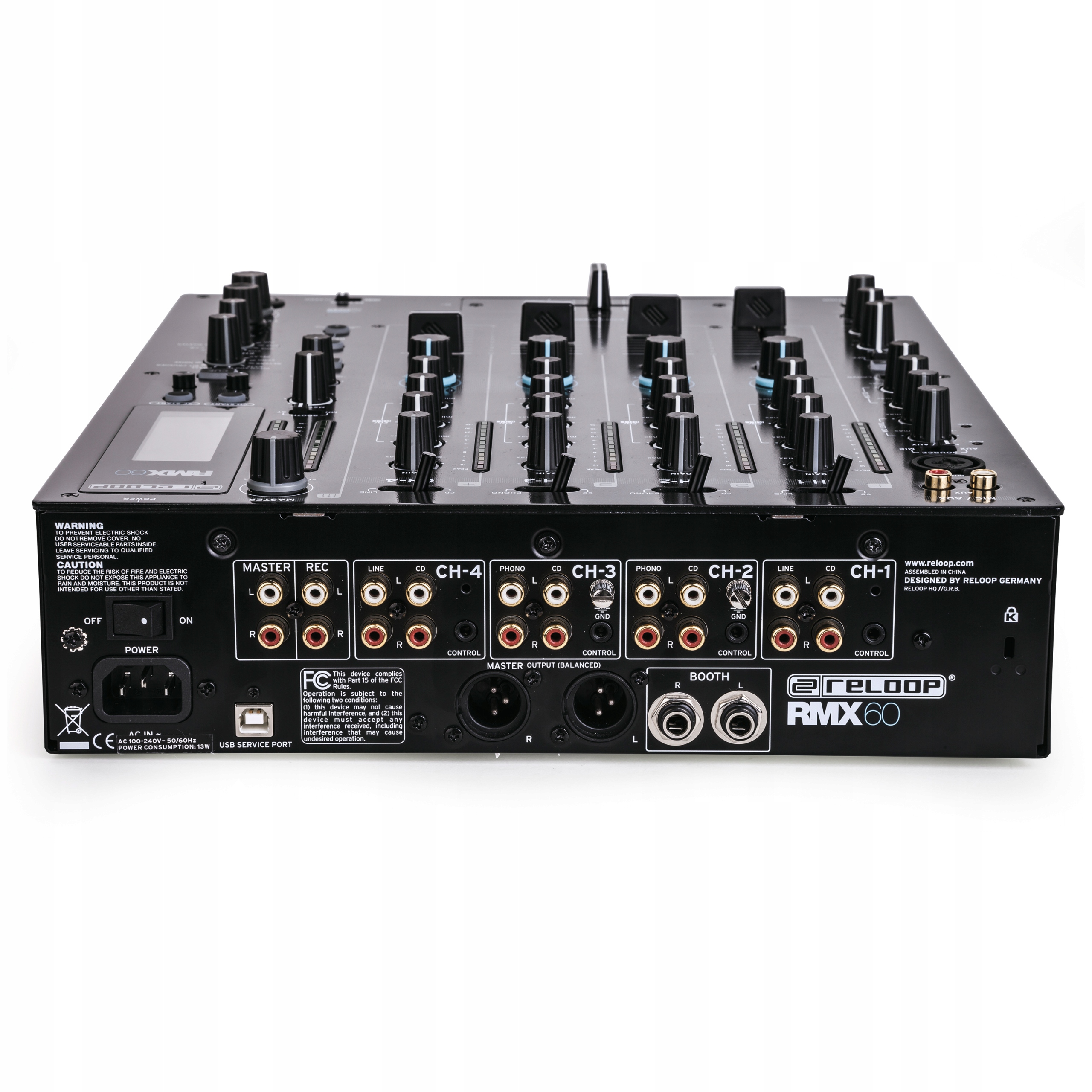RMX-60 Digital -відмінний змішувач для всіх програм DJ. Останній змішувач Reloop приймає класичну конструкцію 4-канального змішувача (4+1), адаптованого до сучасних стандартів, завдяки якому він забезпечує широкий спектр варіантів з'єднання, міцної конструкції та повністю цифрової аудіо архітектури.
