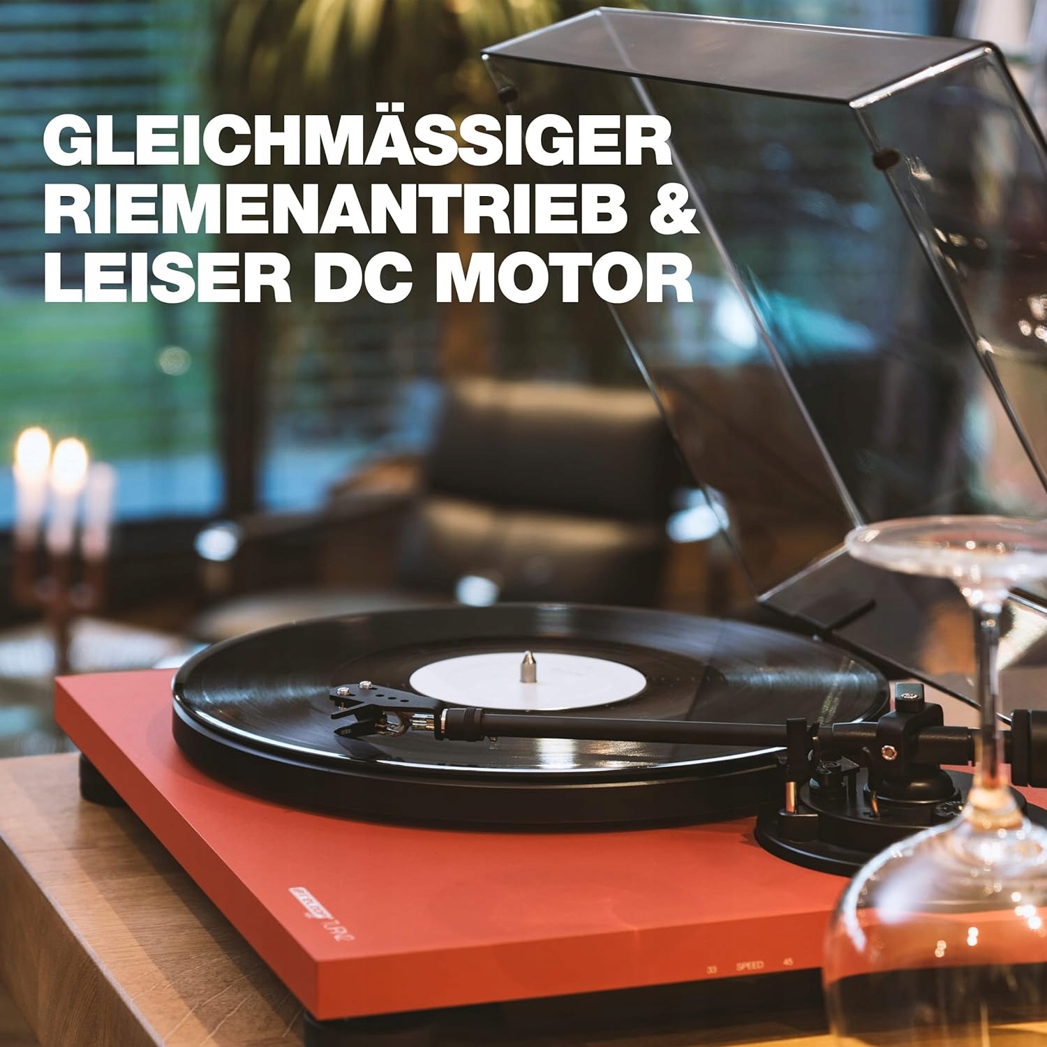 Прецизійний ремінний привід у RELOOP Turn 2 забезпечує постійну швидкість диска з мінімальною вібрацією та тремтінням. Вбудований двигун постійного струму з низьким рівнем вібрації надзвичайно тихий, що означає, що RELOOP Turn 2 можна безпечно розміщувати в кімнатах для прослуховування або в житлових приміщеннях.
