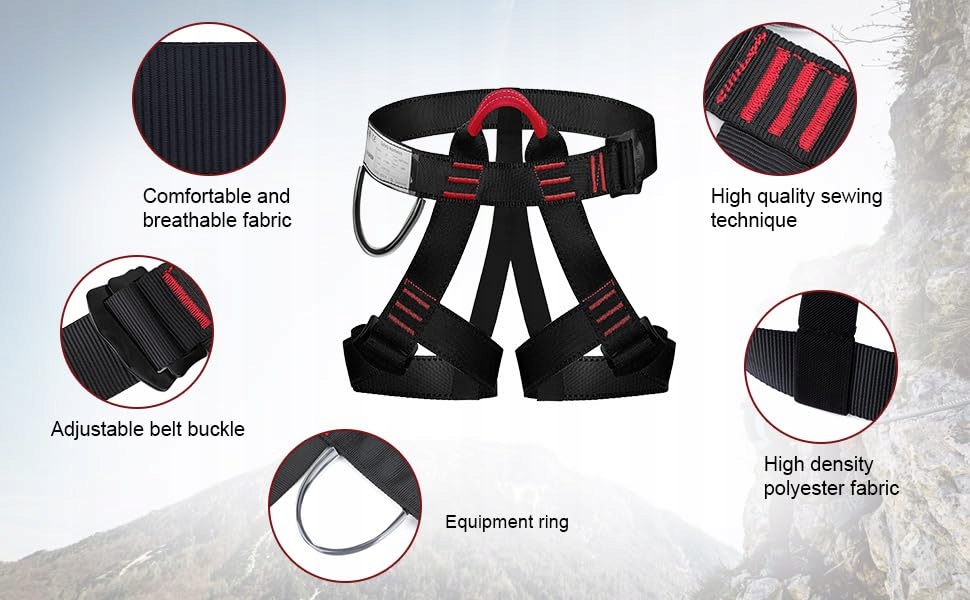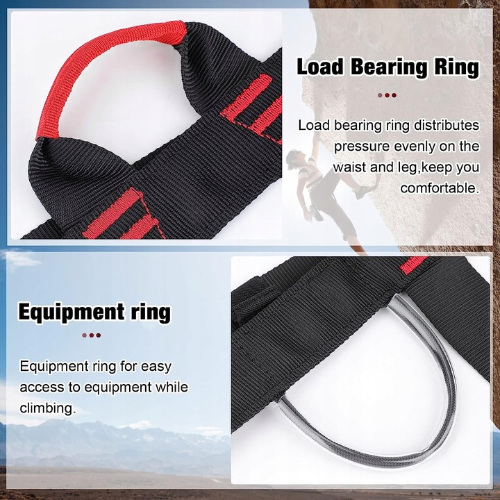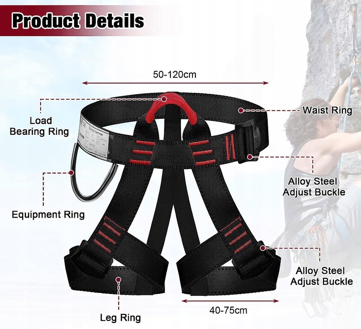 - 【Відповідний розмір】обхват талії 50-120 см. Обхват ноги: 40-75 см. Завдяки регульованим пряжкам ремінь для скелелазіння можна оптимально підібрати відповідно до вашого індивідуального розміру.