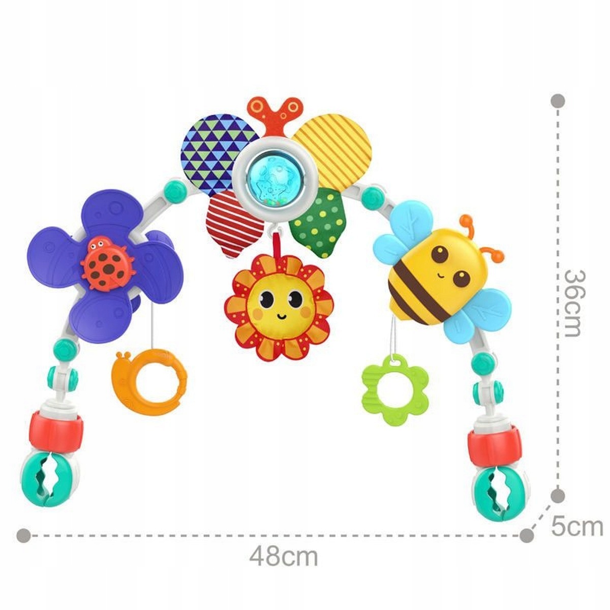 - Багатофункціональність: пов'язку можна легко прикріпити не тільки до коляски, але й до ліжечка або автокрісла, забезпечуючи розвагу дитині в різних ситуаціях.