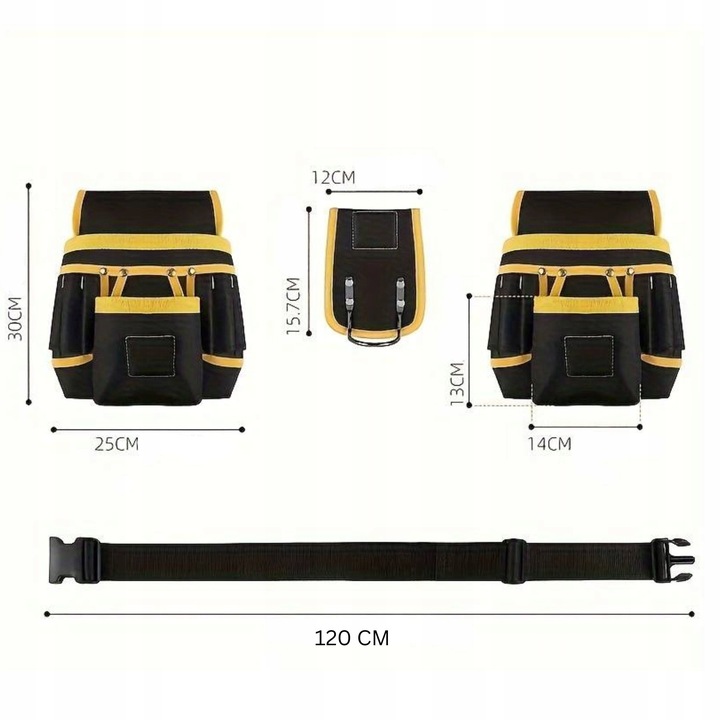 Пояс для столярних інструментів із 26 кишенями забезпечує достатньо місця для цвяхів, молотків, викруток, мірних стрічок та багатьох інших інструментів, тож вони завжди будуть під рукою. Ідеально підходить для будівельників, столярів, слюсарів, сантехніків, електриків та інших.
