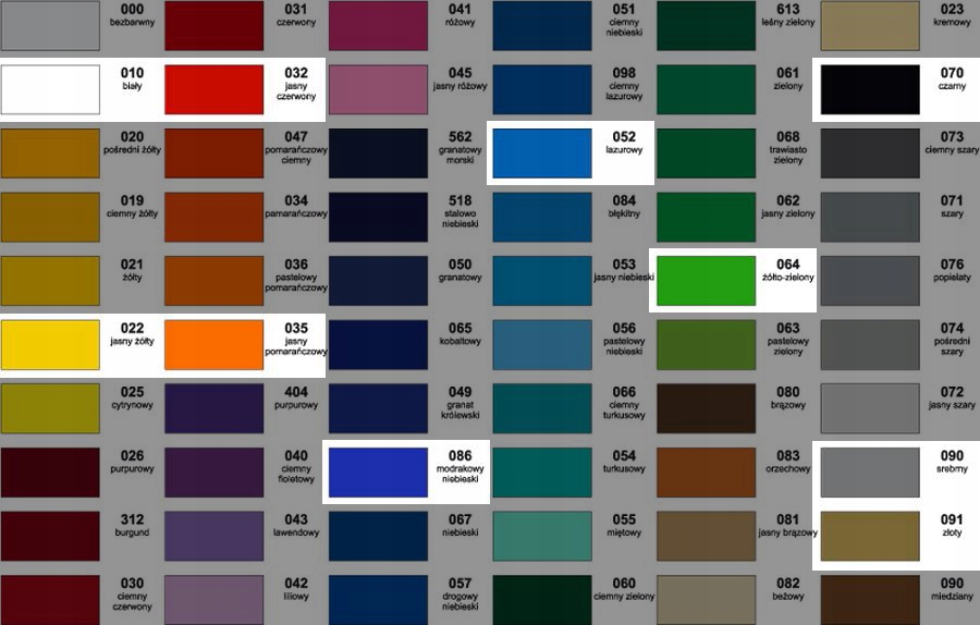 Виділені елементи є основними кольорами. Якщо ви замовляєте набір без номерів і просто вказуєте колір, напр. зелений, червоний або синій і т. д. - ви отримаєте набір в базовому кольорі.