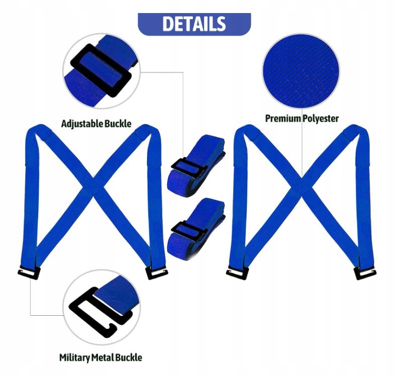 ➔ Регулювальні пряжки з високоякісного пластику - дозволяють легко регулювати довжину ременів (до 3,5 м).