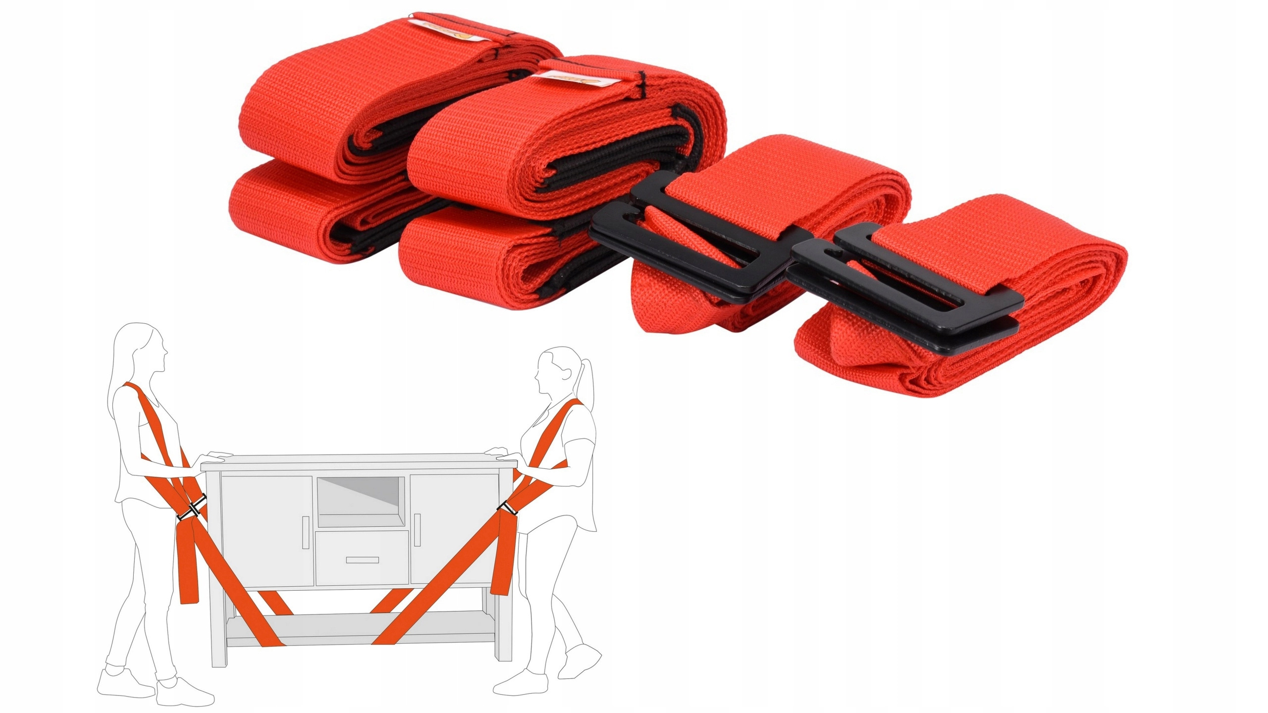 - Ремені, залежно від моделі, які носяться на спині (як упряж) або на передпліччях, значно полегшують перенесення важких, великих предметів, зменшуючи зусилля та підвищуючи безпеку роботи, одночасно захищаючи перенесені меблі від пошкоджень.