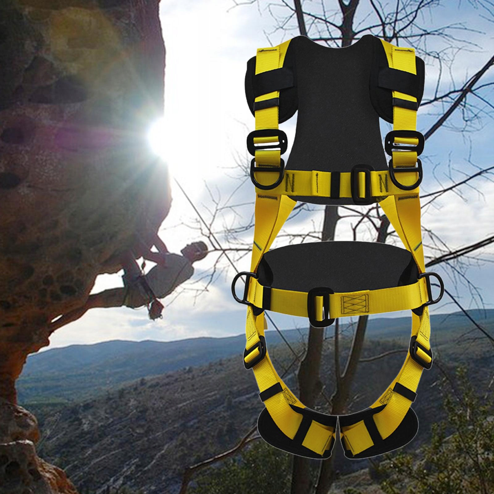 Ремінь для скелелазіння Обладнання для спуску по дереву Ремінь безпеки Захист від падіння Жовтий чорний