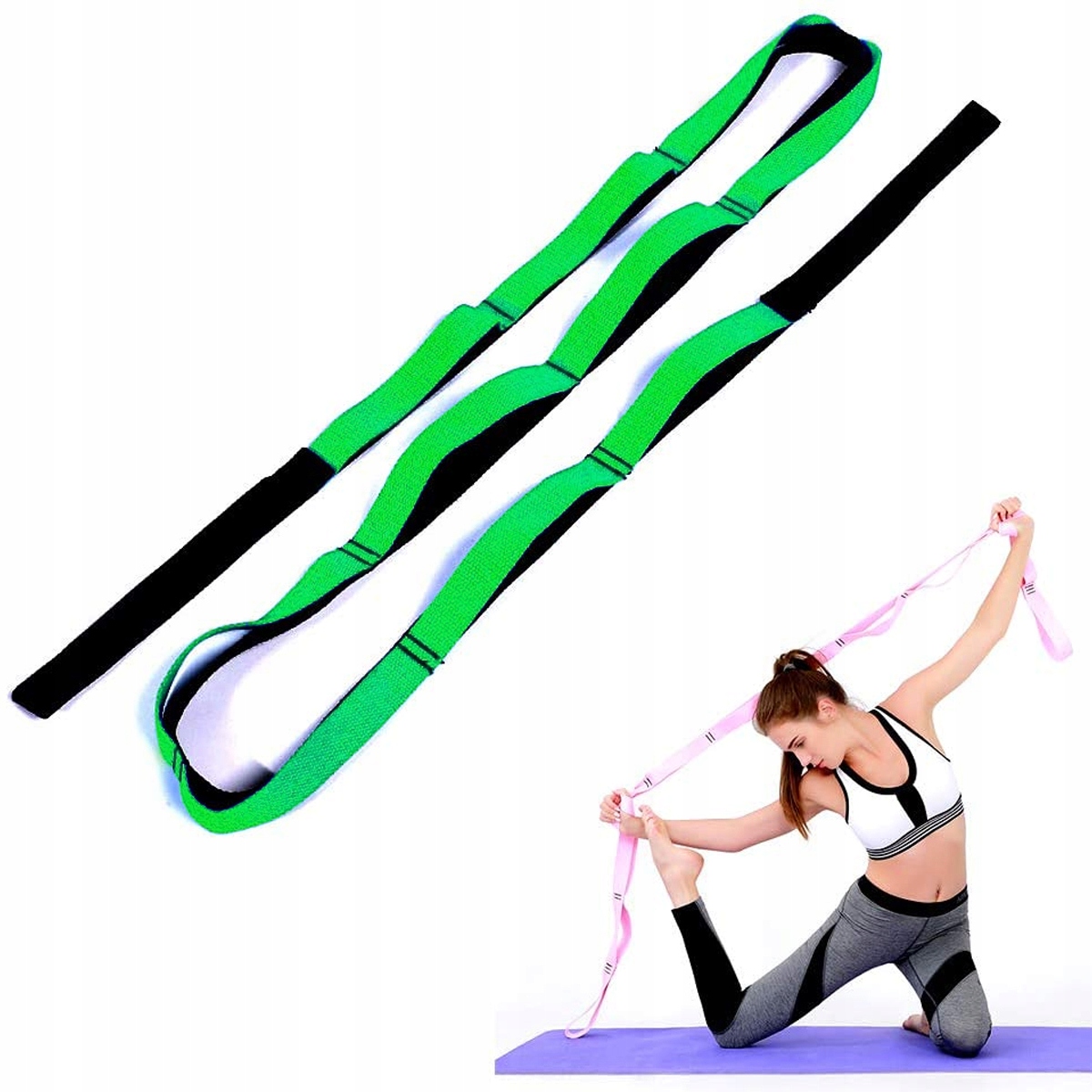 Наш ремінь унікальний продукт на ринку. Завдяки своєму дизайну він пропонує набагато більше, ніж звичайний ремінь. 10 еластичних петель дозволяють виконувати набагато складніші вправи, ніж зазвичай. Ми можемо прикріпити ногу до петель і практикувати розтяжку. Використовуючи цей ремінець для йоги, ми можемо легко виправити наявні положення.