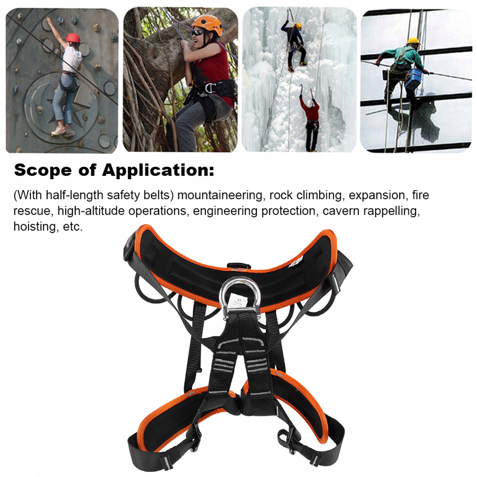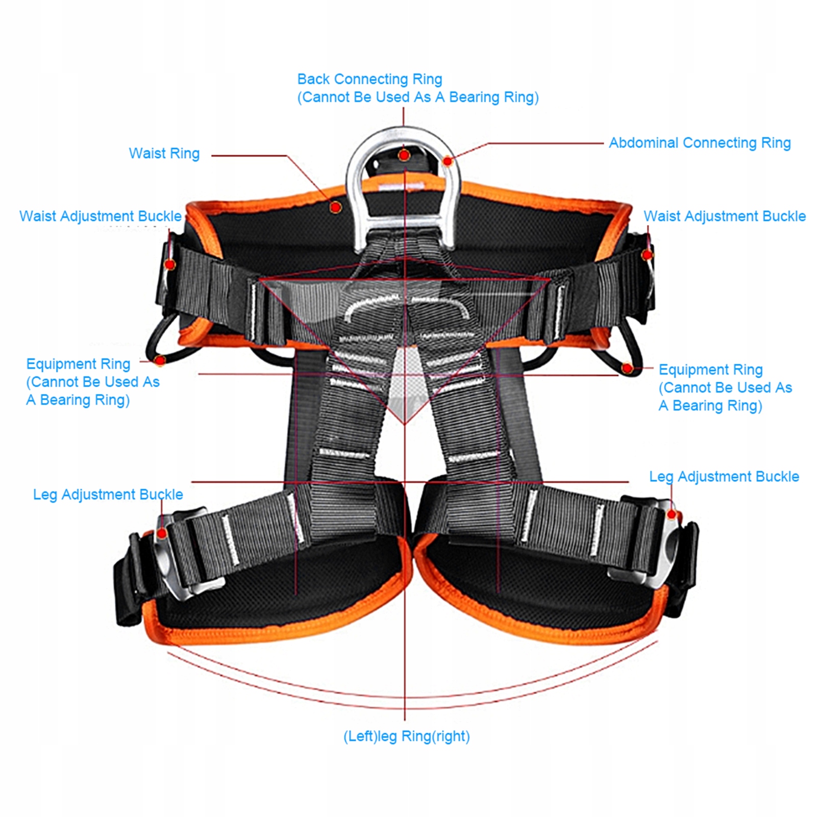 1. Кільце, що з'єднує груди, має більшу силу розтягування, а вага може бути рівномірно розподілений під впливом стресу. 2. Можна отримати бічний підшипник. Під час рятувальної операції захисна пряжка на лінії може бути підключена до бічного кріплення, створюючи постійний захист типу стовпа. 3. На стороні ременя безпеки додано чотири кільця обладнання, що дозволяє зручно передати та розміщувати обладнання. 4. Внутрішній шар талії та ніг виготовлений з дихаючого матеріалу, що забезпечує зручне пристосування. 5, регулюючи пряжку з підробленим металом, ви можете вільно відрегулювати еластичність стрічки залежно від різних ланцюгів талії. Задня точка з'єднання також використовується підробленим металом для підключення повідку або плечового ремінця. 6, з ременями безпеки, наполовину довжиною, підходящими для альпінізму, скелелазіння, розширення, пожежного порятунку, великих висот, інженерного захисту, ковзання на печерах, підйому тощо.