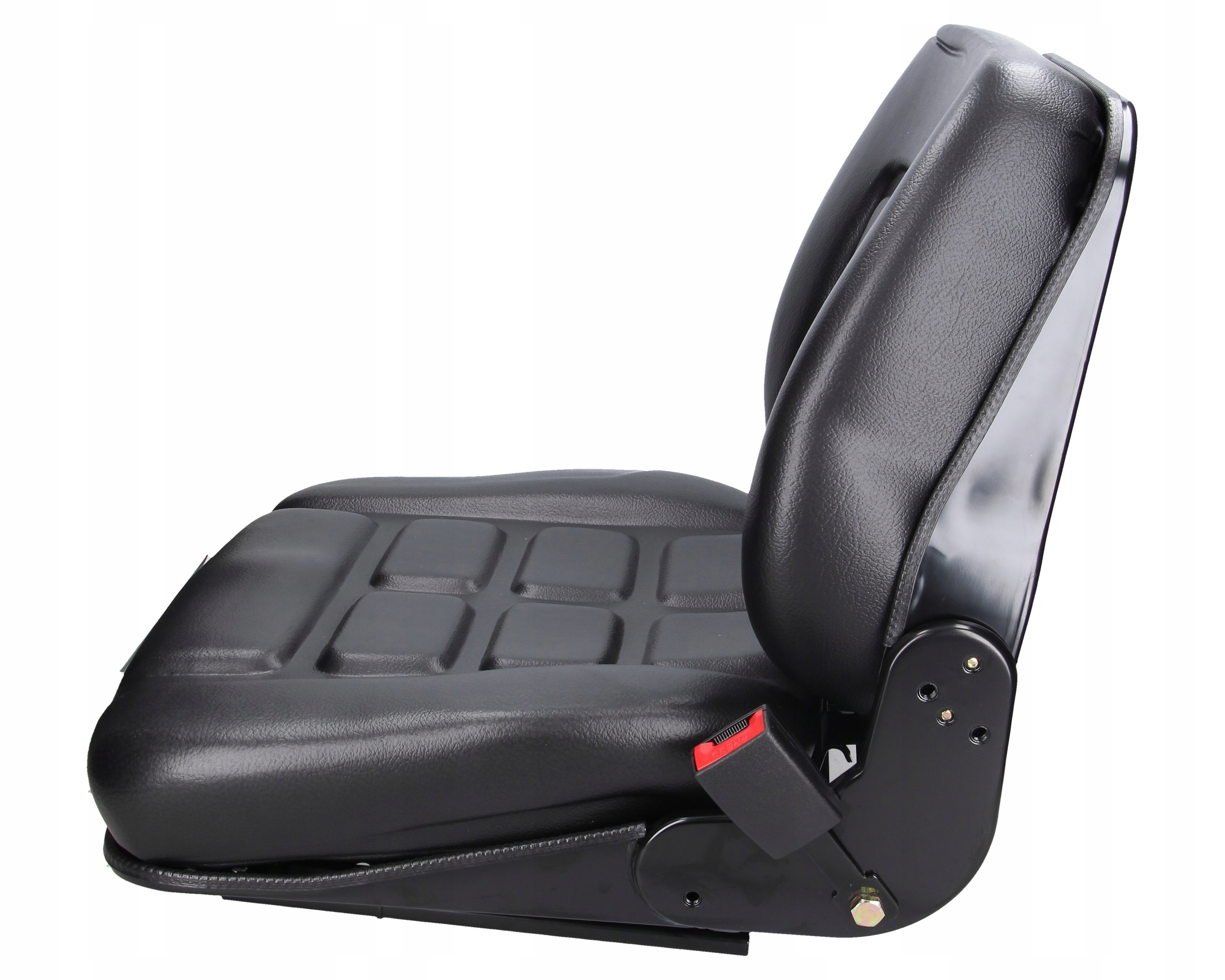 Сидіння для навантажувача з поясним ременем. Це ергономічне сидіння для навантажувача дозволяє оператору комфортно та ефективно працювати протягом усього дня Це сидіння з ПВХ стійке до плям і надзвичайно міцне. Його легко чистити та він довговічний. Додайте комфорту та стилю своїй машині за допомогою цього гладкого чорного сидіння. Втягувач сидіння з автоматичним блокуванням фіксує водія без використання затискача ременя безпеки. Значно підвищує безпеку роботи. За бажанням сидіння може бути оснащене підлокітниками. При необхідності крісло можна оснастити тримачем для документів. Інтегрована напрямна забезпечує таку необхідну робочу гнучкість. Це дозволяє користувачеві вибрати власне ідеальне положення для сидіння.