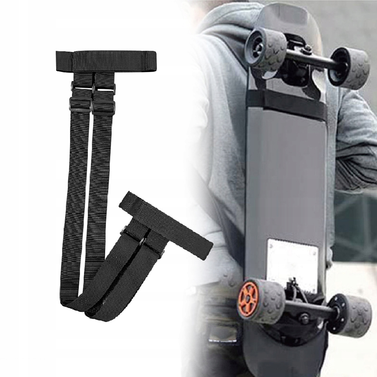 - Вироблений з високоякісного нейлонового матеріалу, ремінь міцний і довговічний. Це може бути згортається і покласти його в кишеню пальто або сумку. Ви можете носити своє скейтбордне обладнання, коли дошка все ще з вами.