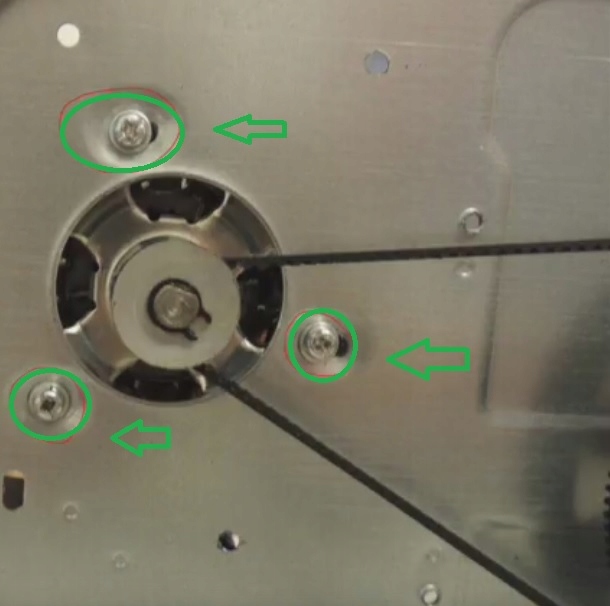 Обережно підніміть пластикові фіксатори, що тримають бічну кришку, і наступіть на неї, відкрутіть позначені гвинти, щоб відокремити пластикову нижню частину основи з приводом