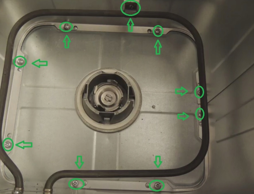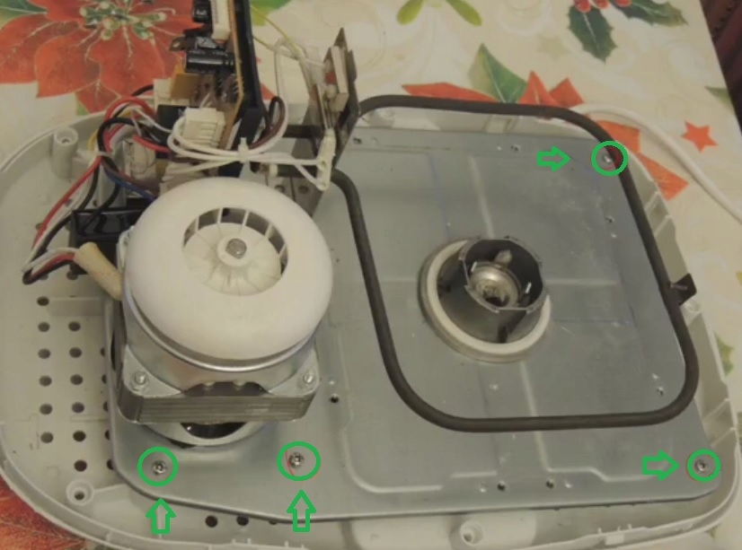 відкрутіть позначені гвинти, що кріплять металеву вставку до нагрівача