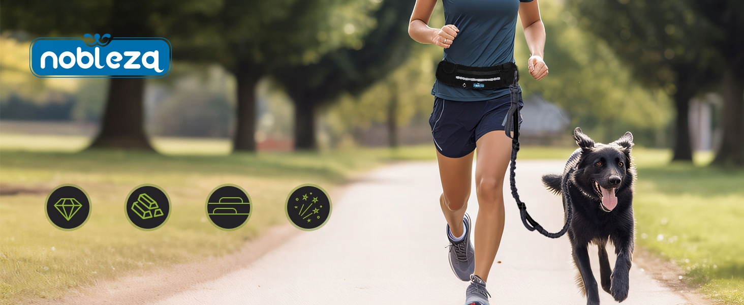 Пояс Nobleza Dog Running Belt також має міцну металеву застібку, яку можна обертати на 360°, щоб уникнути заплутування.