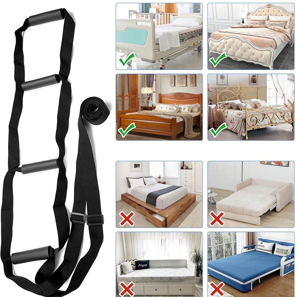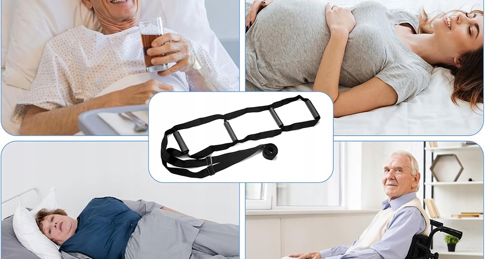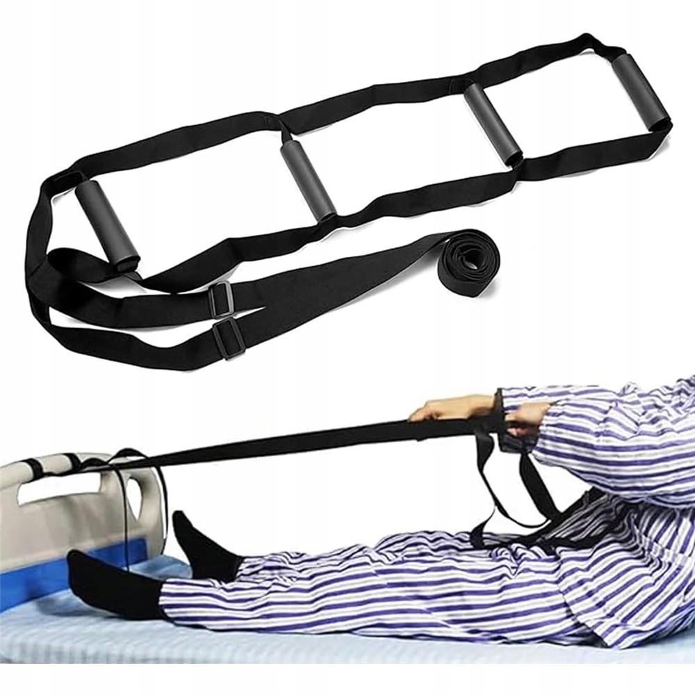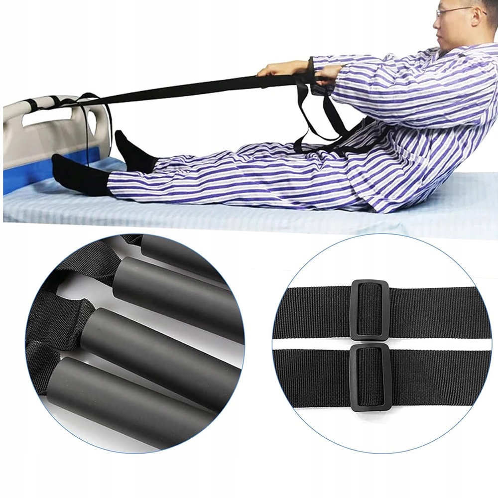 Він оснащений 4 міцними, гнучкими та зручними ручками. Ліжкова драбина-помічник допомагає легко та поступово підніматися та забезпечує додаткову підтримку під час сидіння. Потовщені ручки з регульованими застібками забезпечують більш зручну та швидку роботу.