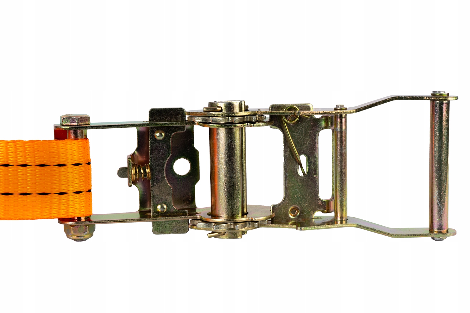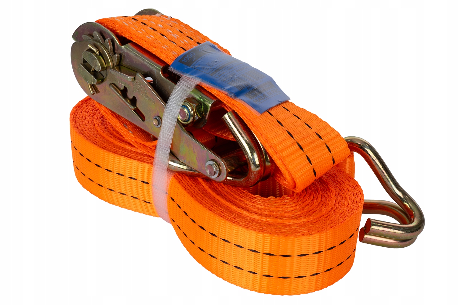 Транспортний ремінь з натягувачем. Загальна довжина ременя (тобто довжина ременя та довжина пряжки разом) становить до 8 метрів, тому його можна використовувати для кріплення навіть дуже великих вантажів. Ширина стрічки 35 мм і міцність 2 тонни дозволяють обв'язувати навіть важкі вантажі. Це робить його придатним для професійного використання в транспортних компаніях, на будівельних майданчиках, а також для приватного транспорту. Всі металеві елементи, включаючи гачки і брязкальце, виготовлені з дуже міцної, стійкої до корозії сталі. Тому кожен елемент транспортувальної стрічки готовий працювати з найвищими навантаженнями.